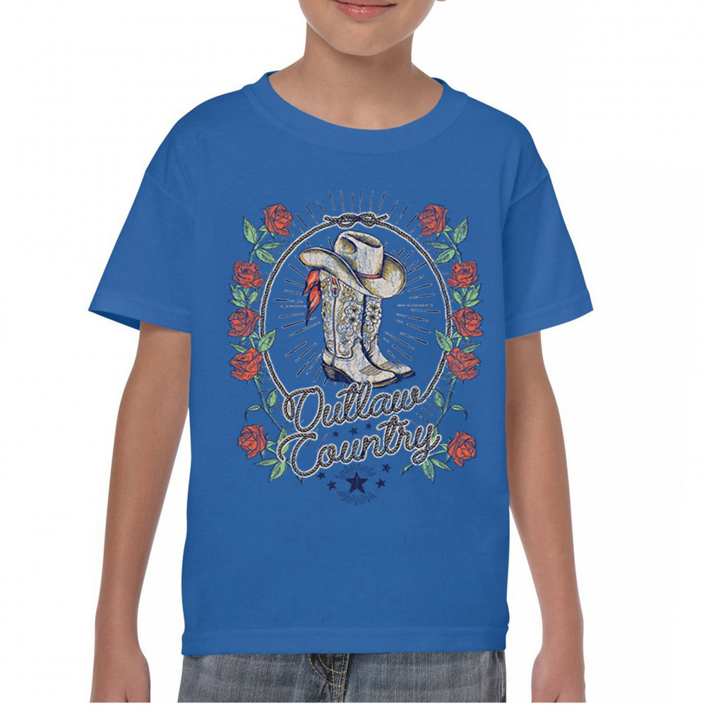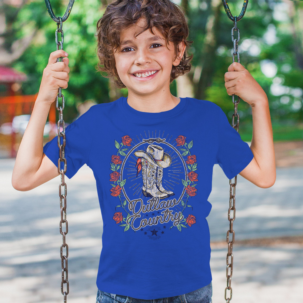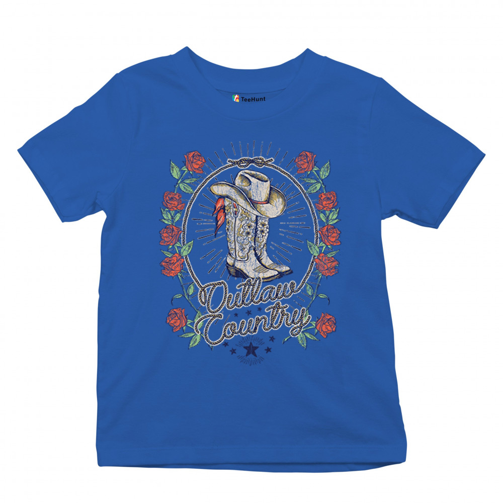Outlaw country design with cowgirl boots, hat, and roses. Bold feminine western style for concerts, rodeos, and southern lifestyle lovers.