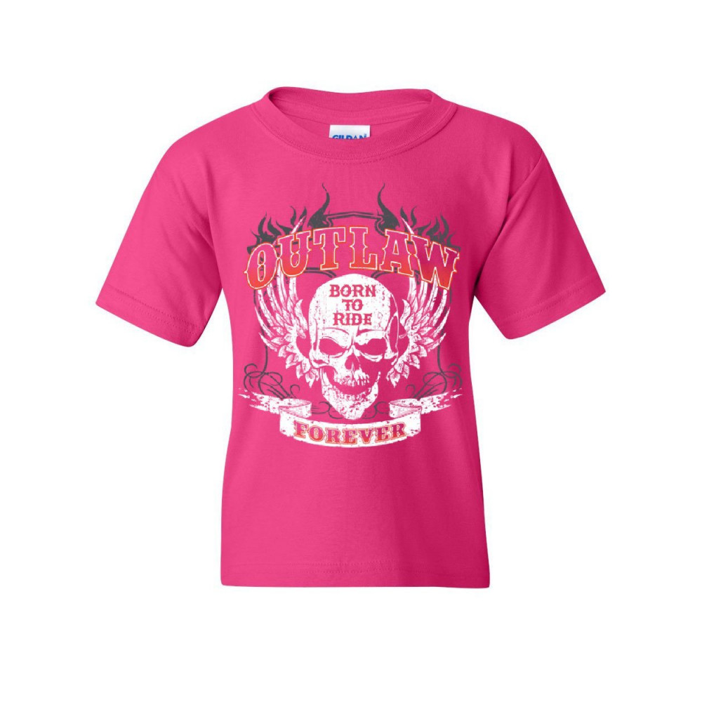 OUTLAW FOREVER youth t-shirt born to ride mc chopper bobber kids tee pink