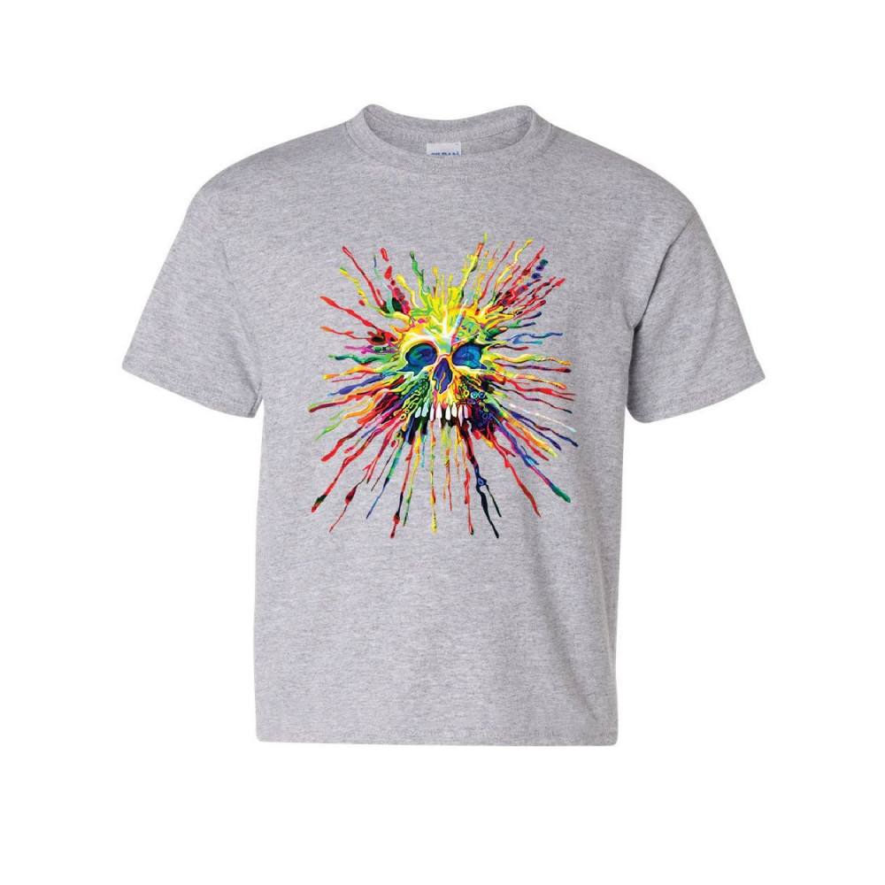 PAINT SPLATTER SKULL youth t-shirt multicolor art crazy melting drip kids tee gray