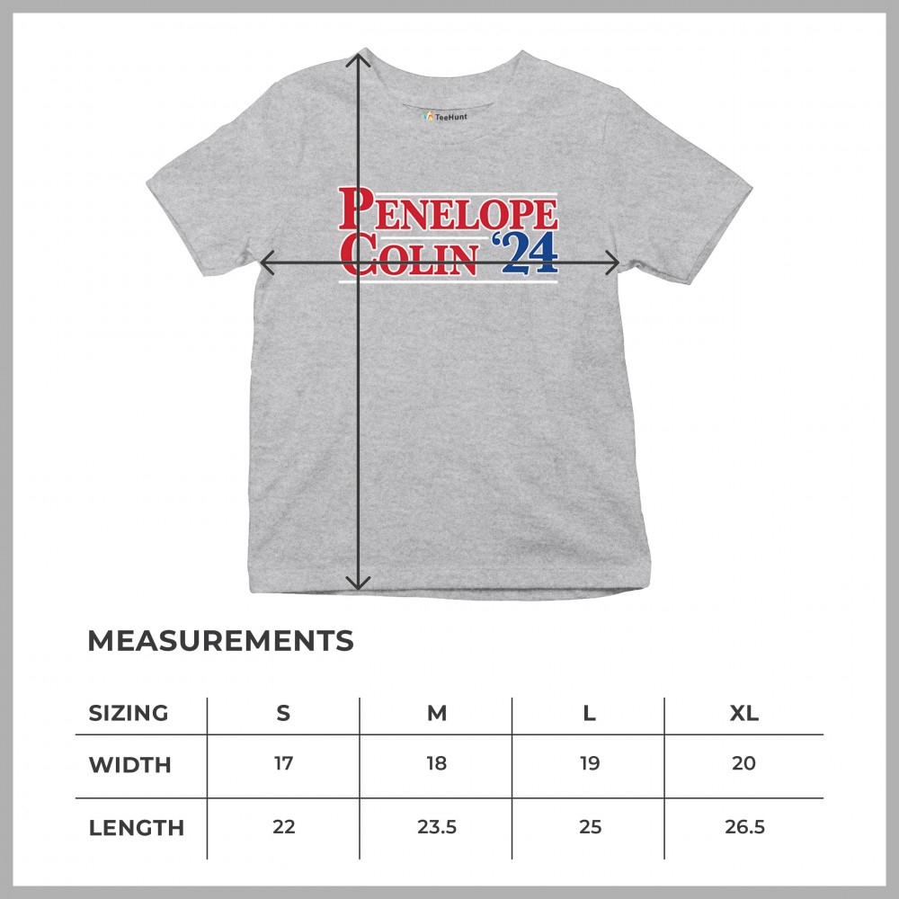 Step into the 2024 election season with a touch of humor and flair with our Penelope and Colin shirt. Designed for fans of political satire and pop culture, this shirt combines quality with a clever twist. Made from soft, high-quality fabric, it ensures comfort and longevity. Perfect for rallies, parties, or just a day out, this shirt will surely make you the center of attention. Embrace the fun side of politics and make a statement with this unique design.