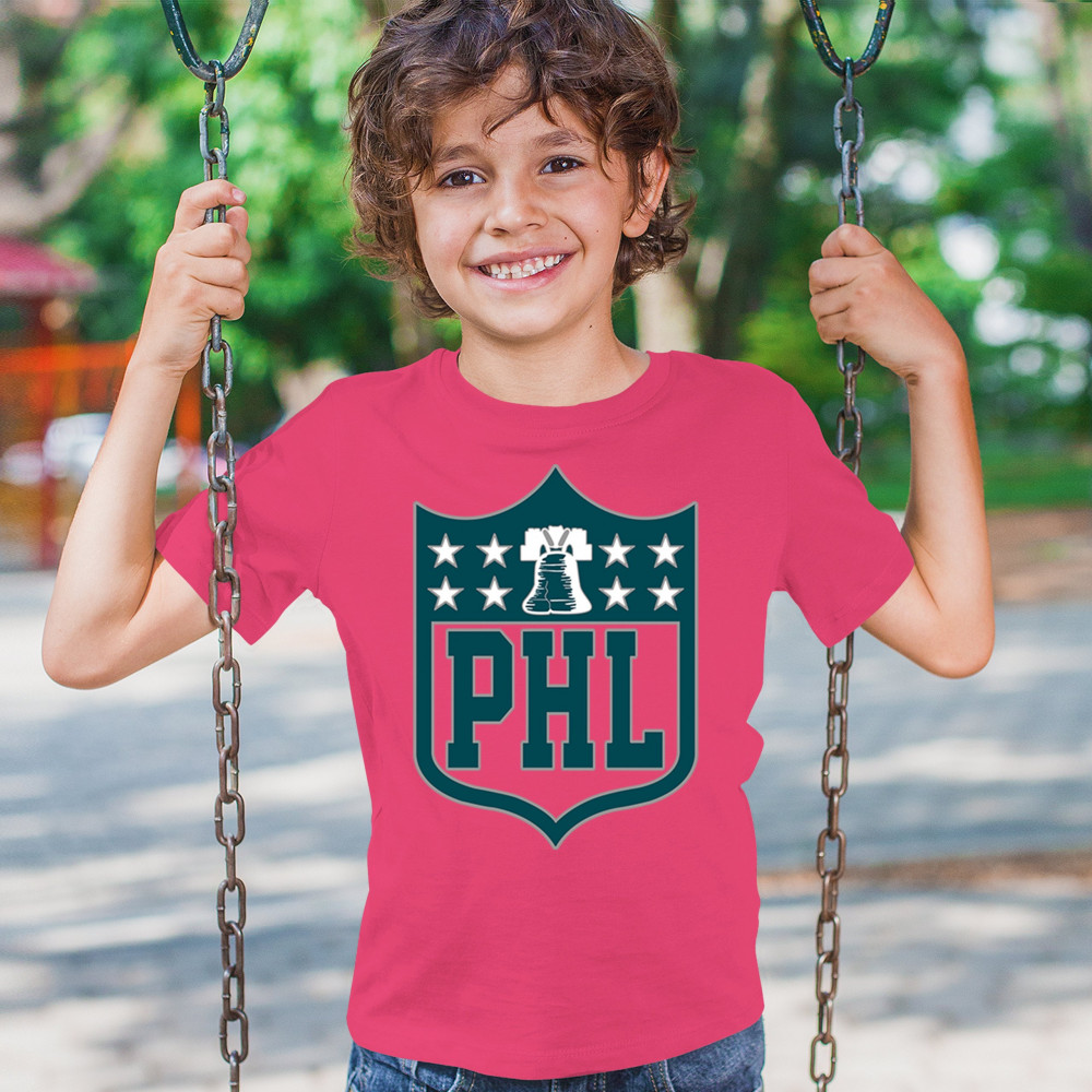 Bold PHL shield with liberty bell, perfect for Sunday football, big game energy, and Philadelphia pride for true fans.