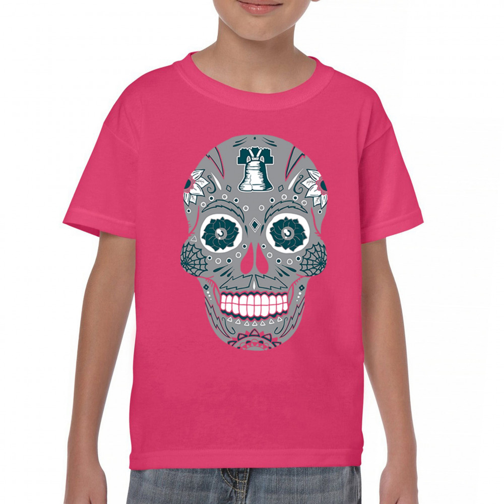 Philly meets tradition in this Sugar Skull design, mixing calavera art with the iconic liberty bell and marigold flowers. Perfect for Philly sports culture, fantasy league energy, or game day skull vibes, it captures Philly gothic art and fan zone spirit. A unique way to honor Dia de los Muertos while showing local Philadelphia pride and heritage in bold style.