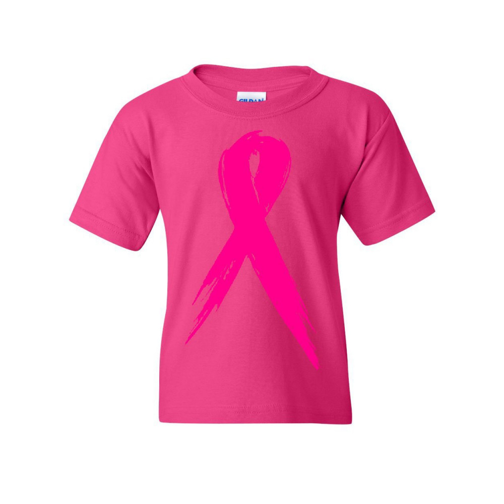 PINK RIBBON BREAST CANCER AWARENESS youth t-shirt hope fight survivor kids tee pink