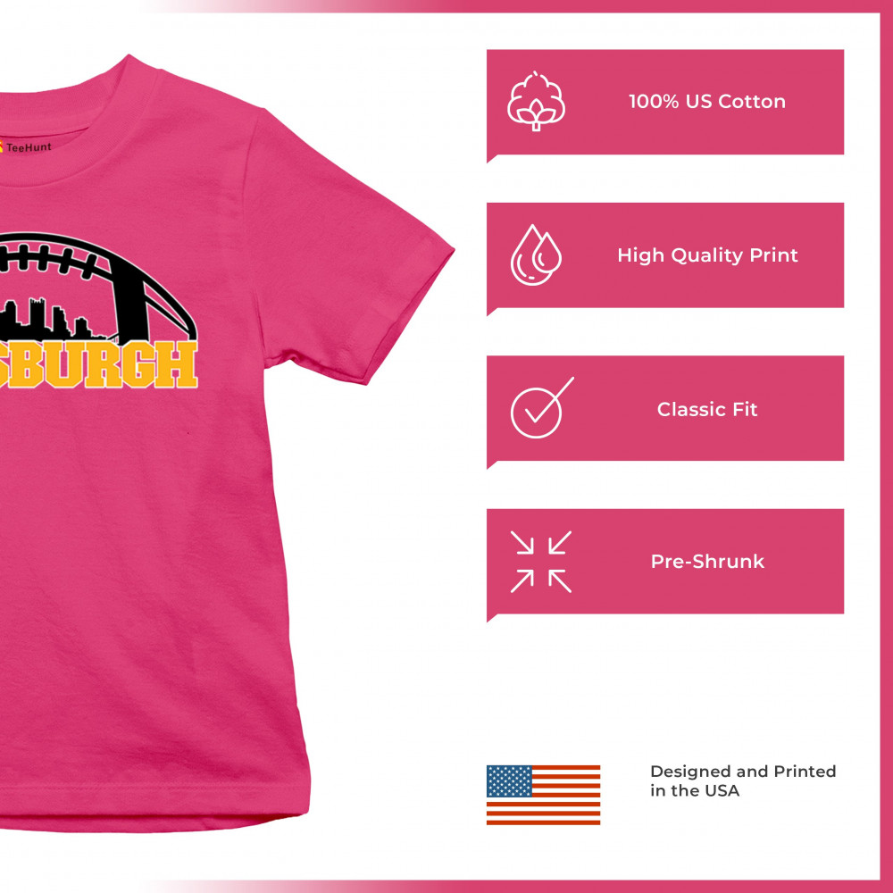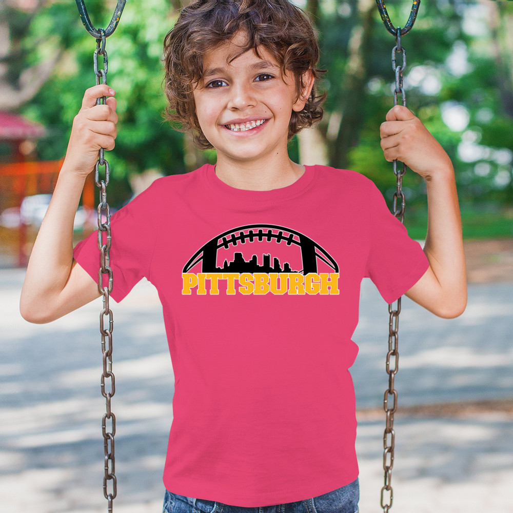 Embrace your Steel City pride with this bold Pittsburgh-themed design, showcasing the city skyline in a unique football graphic. Perfect for game day celebrations, tailgating parties, or everyday wear, this design captures the energy and passion of Pittsburgh's legendary sports culture. Whether you're cheering on your favorite team or representing your city, this design is a must-have for Pittsburgh fans.