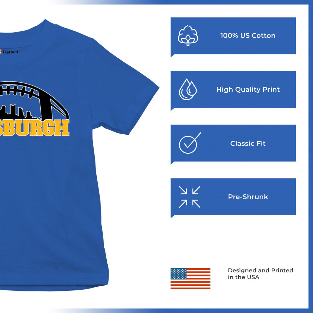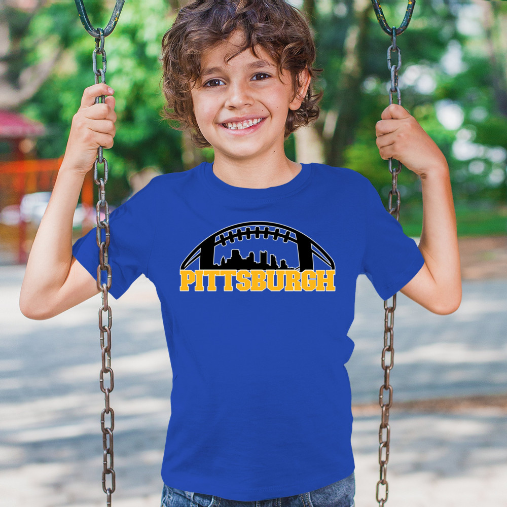 Embrace your Steel City pride with this bold Pittsburgh-themed design, showcasing the city skyline in a unique football graphic. Perfect for game day celebrations, tailgating parties, or everyday wear, this design captures the energy and passion of Pittsburgh's legendary sports culture. Whether you're cheering on your favorite team or representing your city, this design is a must-have for Pittsburgh fans.