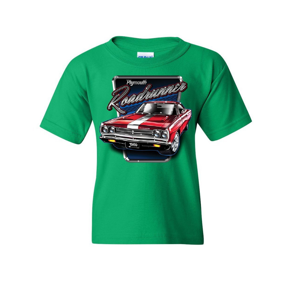 PLYMOUTH ROADRUNNER youth t-shirt american muscle car classic route 66 kids tee green