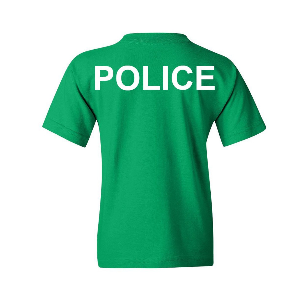 POLICE law enforcement youth t-shirt to protect and to serve emergency kids tee green