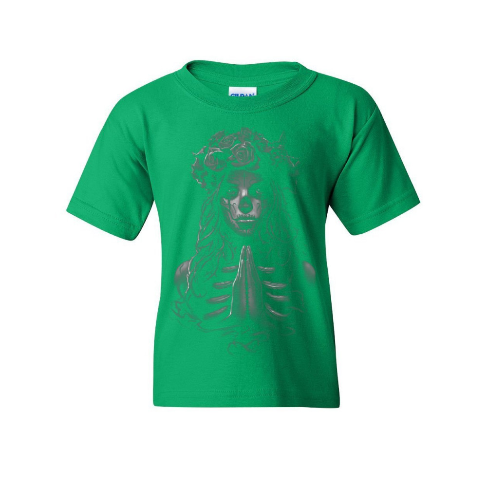 PRAY GIRL youth t-shirt calavera day of the dead dia de los muertos kids tee green
