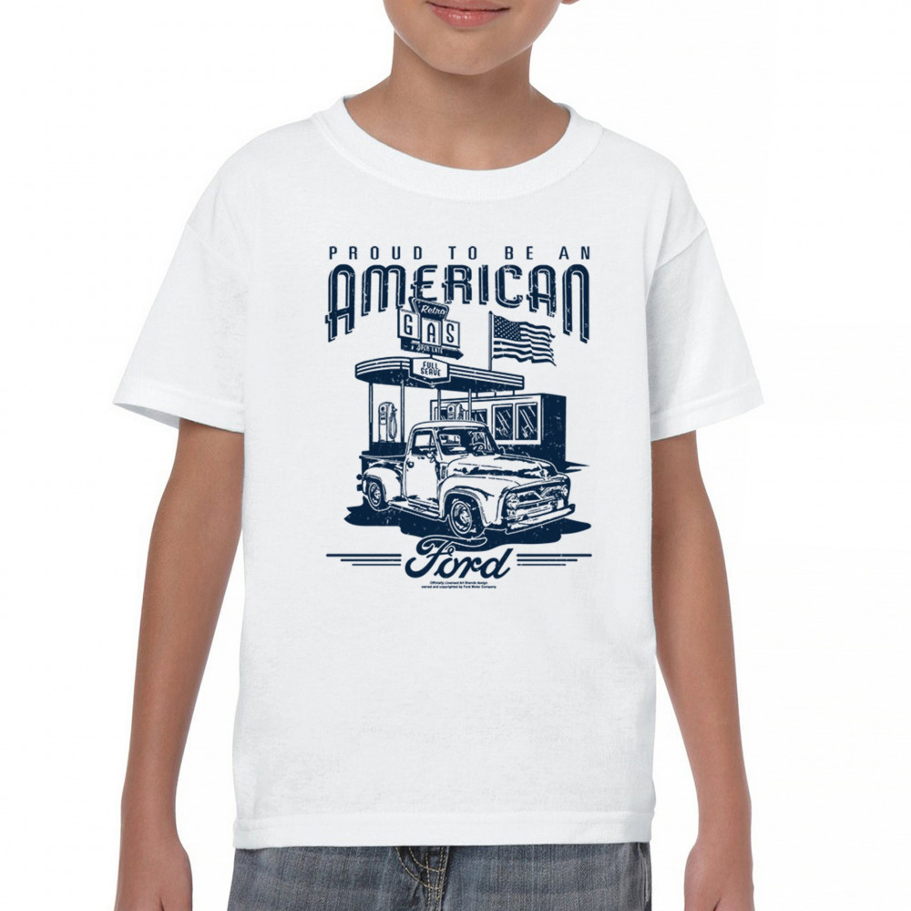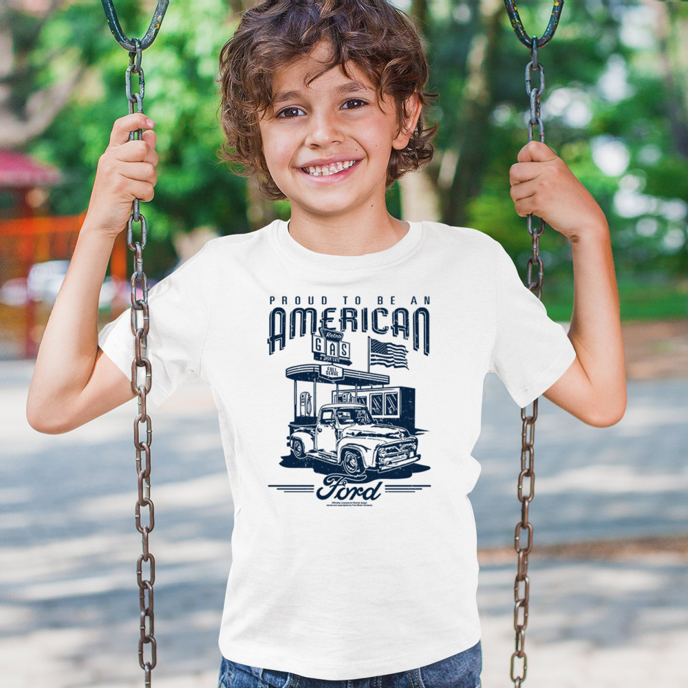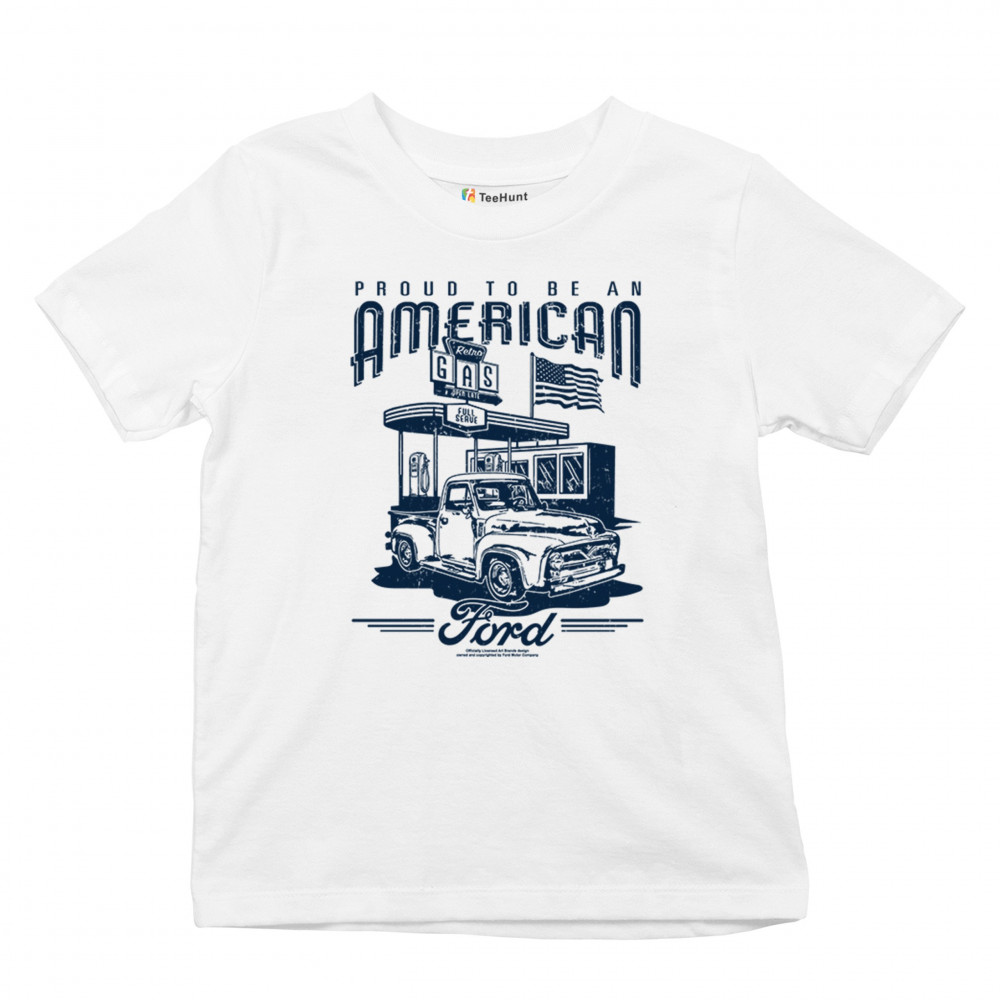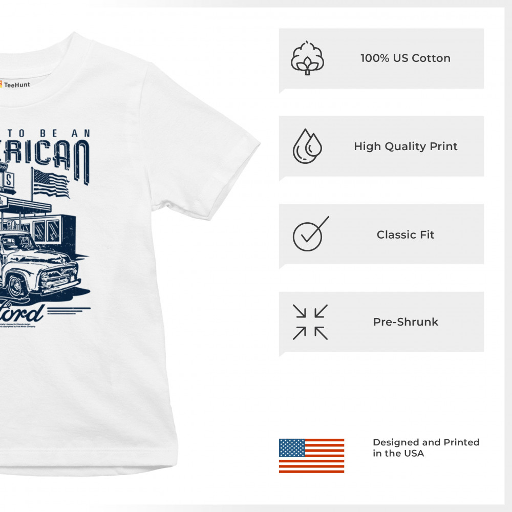 Celebrate Ford's legacy with this vintage 1950s F-Series truck design featuring an American flag. A perfect gift for Ford and classic car enthusiasts.