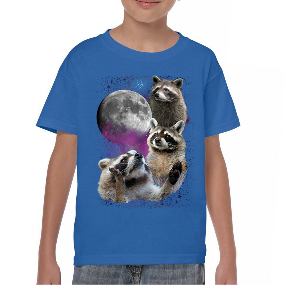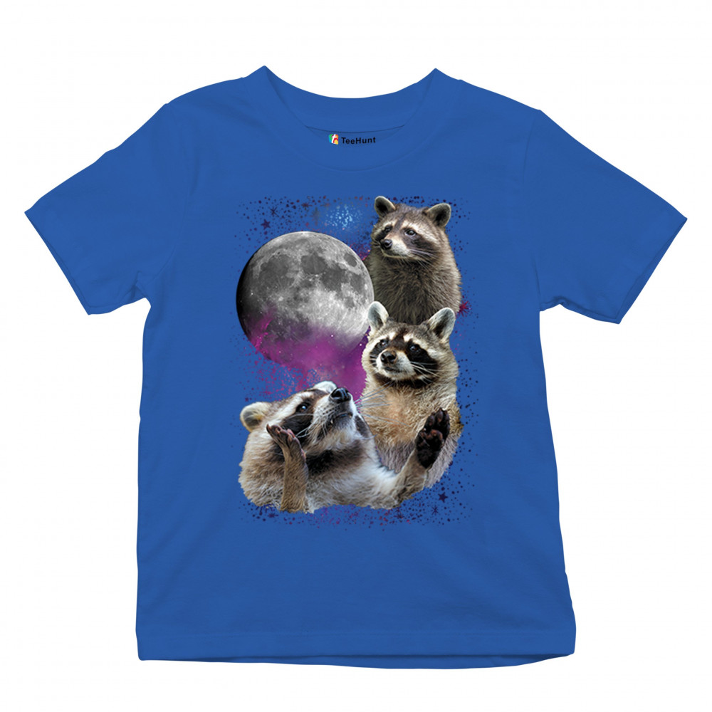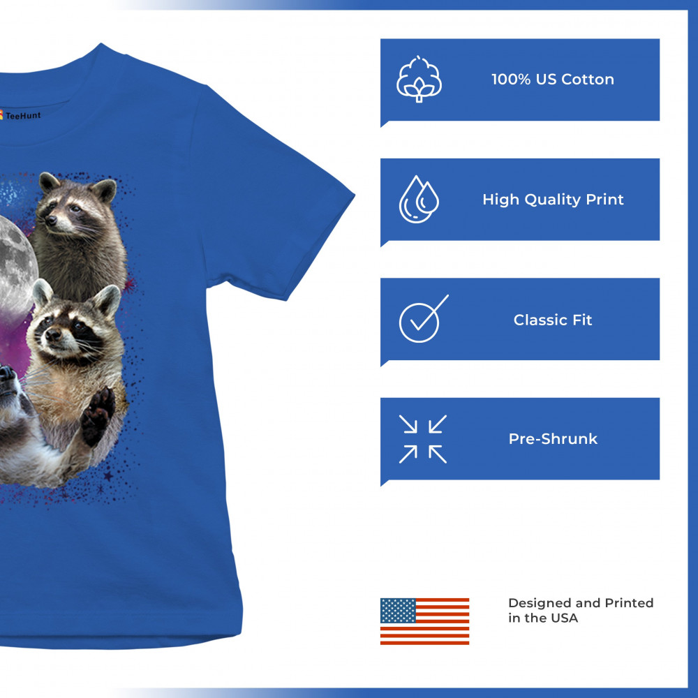 Embrace nature with this quirky raccoon and moon design, perfect for space and animal lovers. Ideal for casual wear or gifts.