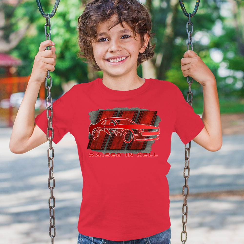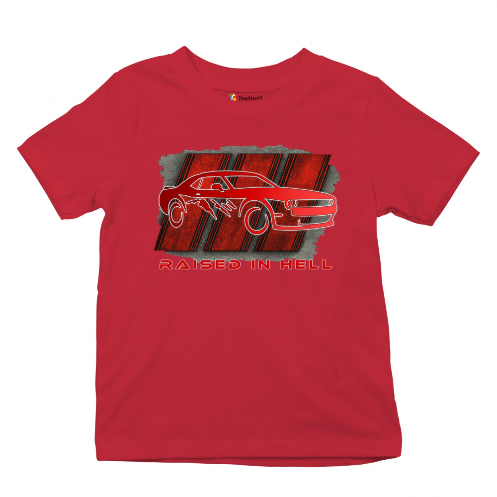 Bring heat to the streets with this Raised in Hell design. Featuring a blazing red muscle car and aggressive claw marks, it's perfect for Scat Pack lovers, burnout warriors, and throttle addicts. Whether you're tearing down the strip or parked at the meet, this design delivers pure muscle attitude and street-born fire.