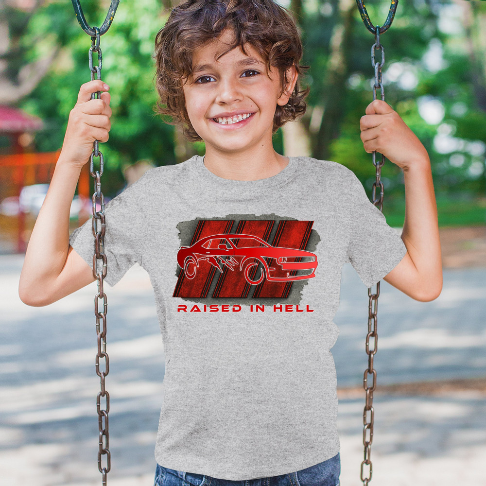 Bring heat to the streets with this Raised in Hell design. Featuring a blazing red muscle car and aggressive claw marks, it's perfect for Scat Pack lovers, burnout warriors, and throttle addicts. Whether you're tearing down the strip or parked at the meet, this design delivers pure muscle attitude and street-born fire.