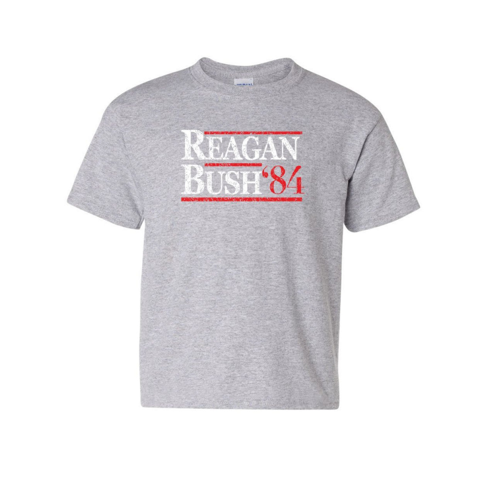 REAGAN BUSH '84 youth t-shirt ronald american president history gop kids tee gray