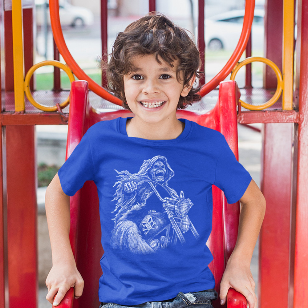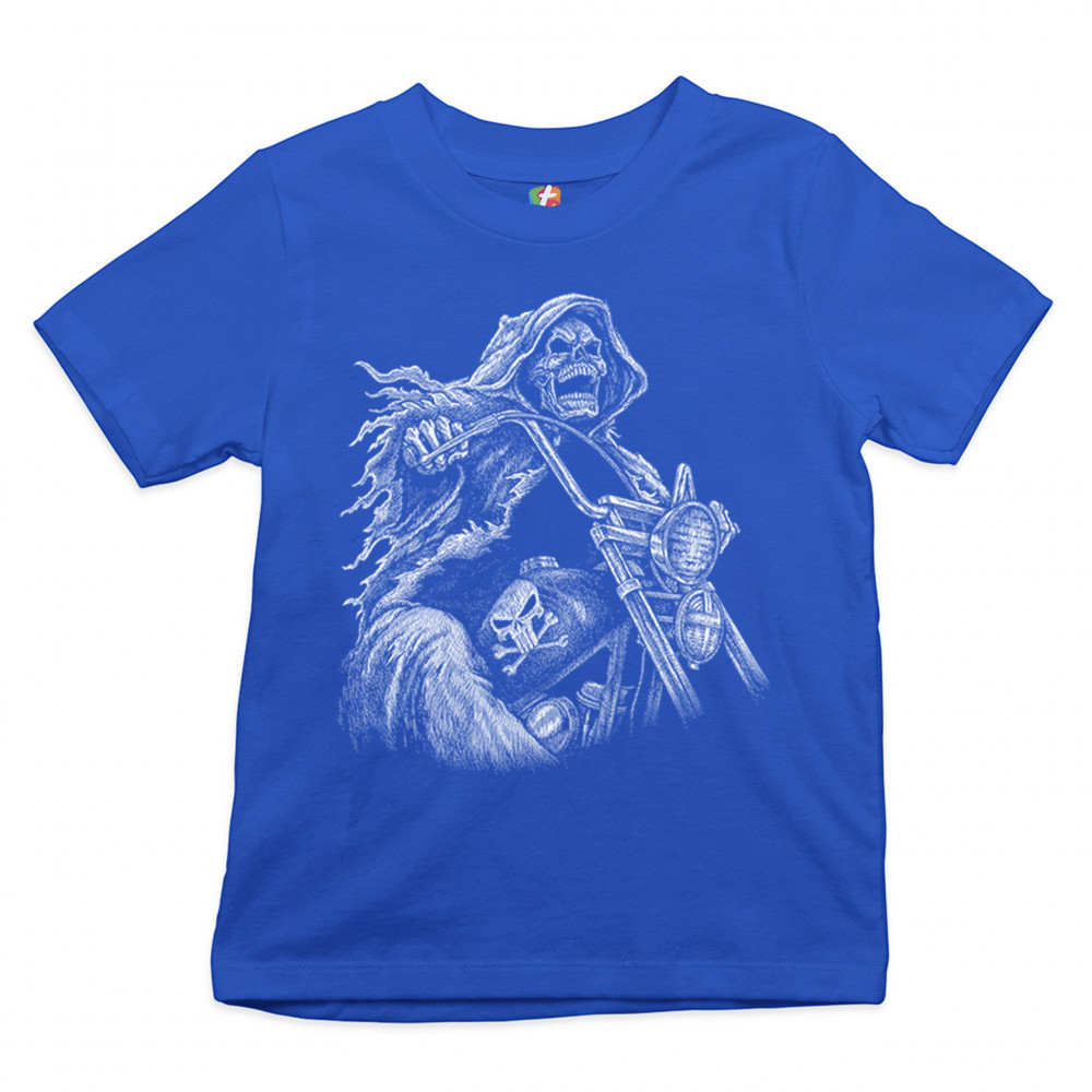 REAPER BIKER youth t-shirt ride or die skeleton biker forever motorcycle kids royal blue