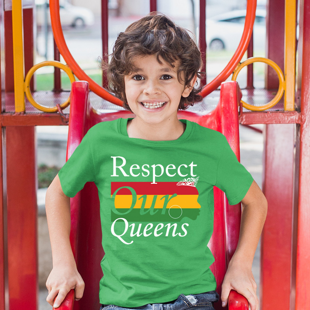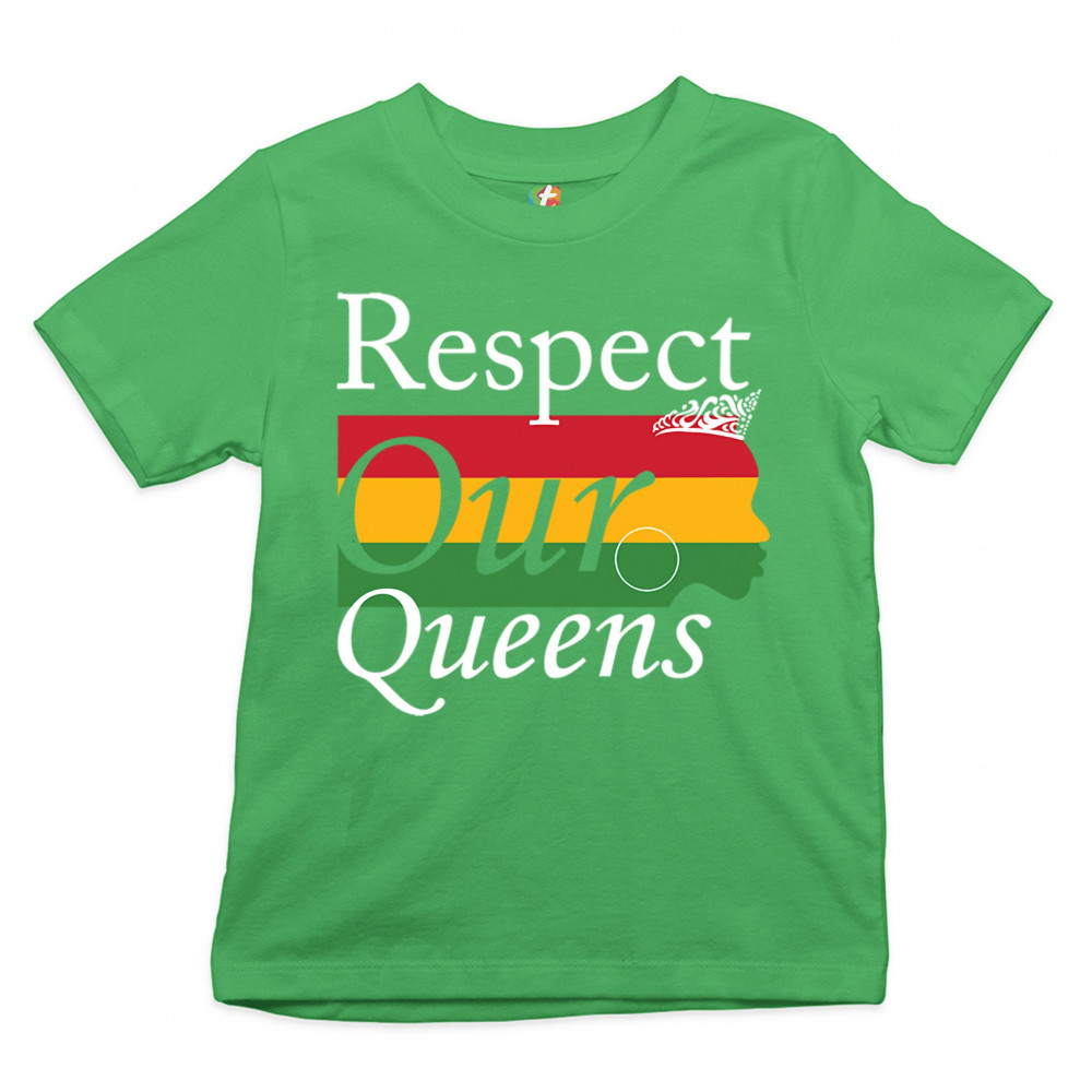 RESPECT OUR QUEENS youth t-shirt black girl magic african american women kids green