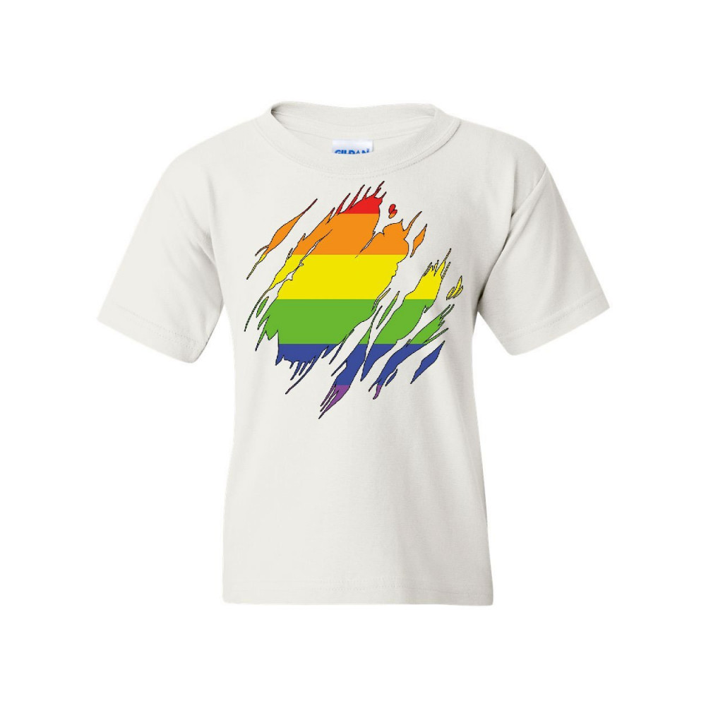 RIPPED GAY PRIDE RAINBOW FLAG youth t-shirt lgbtq love wins white