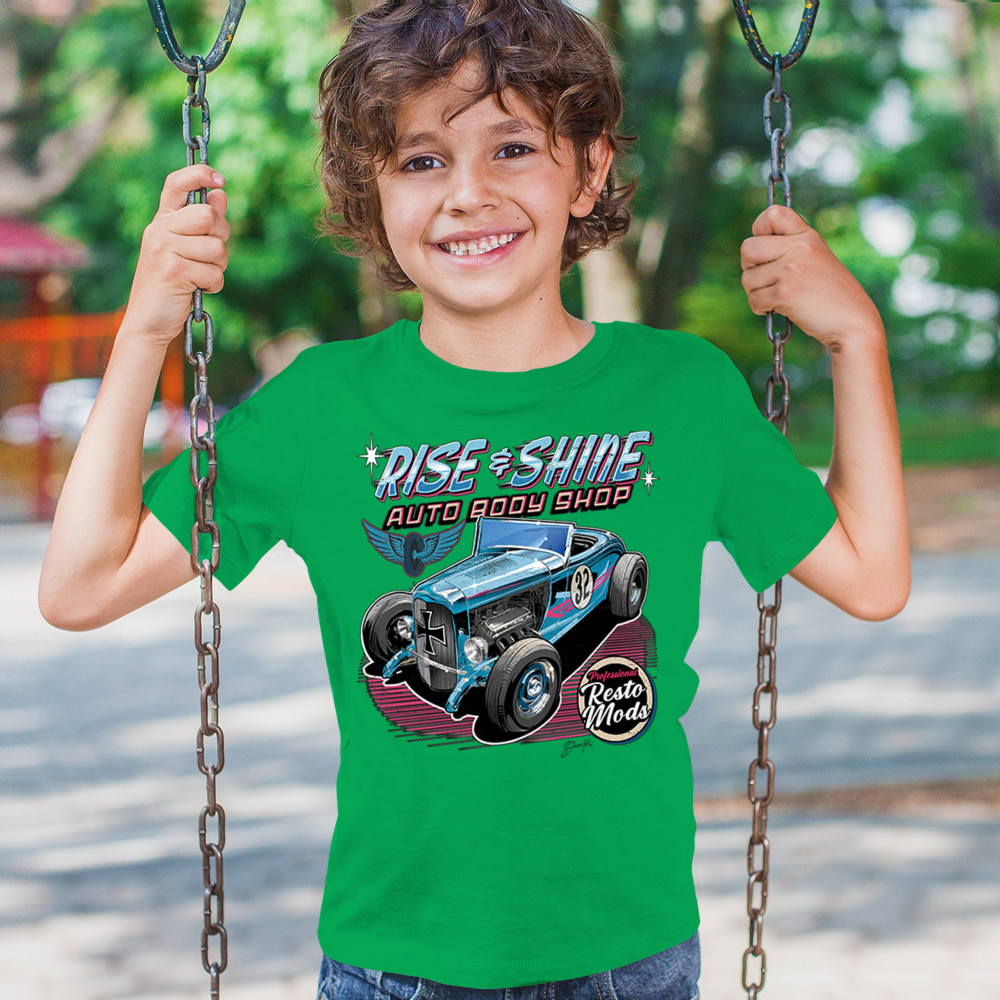 Our "Rise & Shine Auto Body Shop" design is a tribute to classic car culture and professional resto mods. This striking graphic showcases a vintage hot rod, perfect for car enthusiasts and auto restoration fans. Whether you're hitting the car show circuit or working in your garage, this design adds a touch of retro charm to your look. Crafted from premium materials, it offers both comfort and durability, ensuring it stands up to your active lifestyle. Celebrate the art of automotive restoration with this standout design.