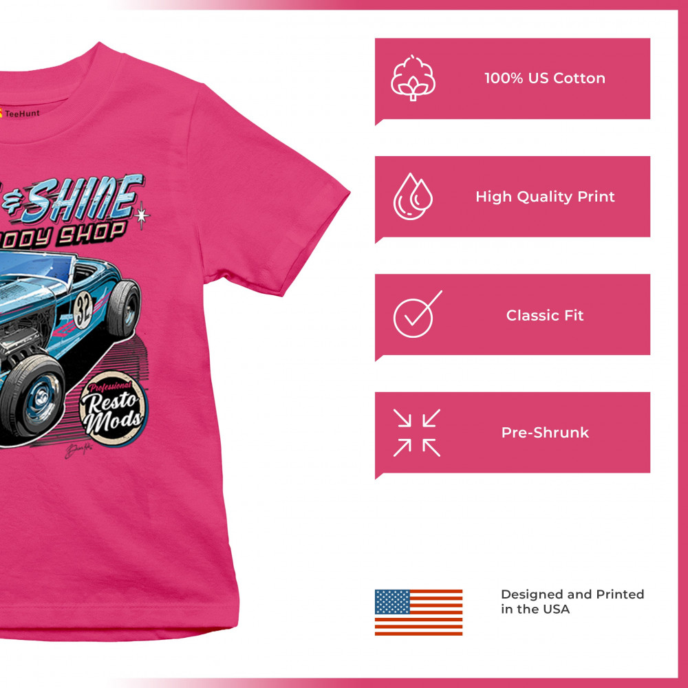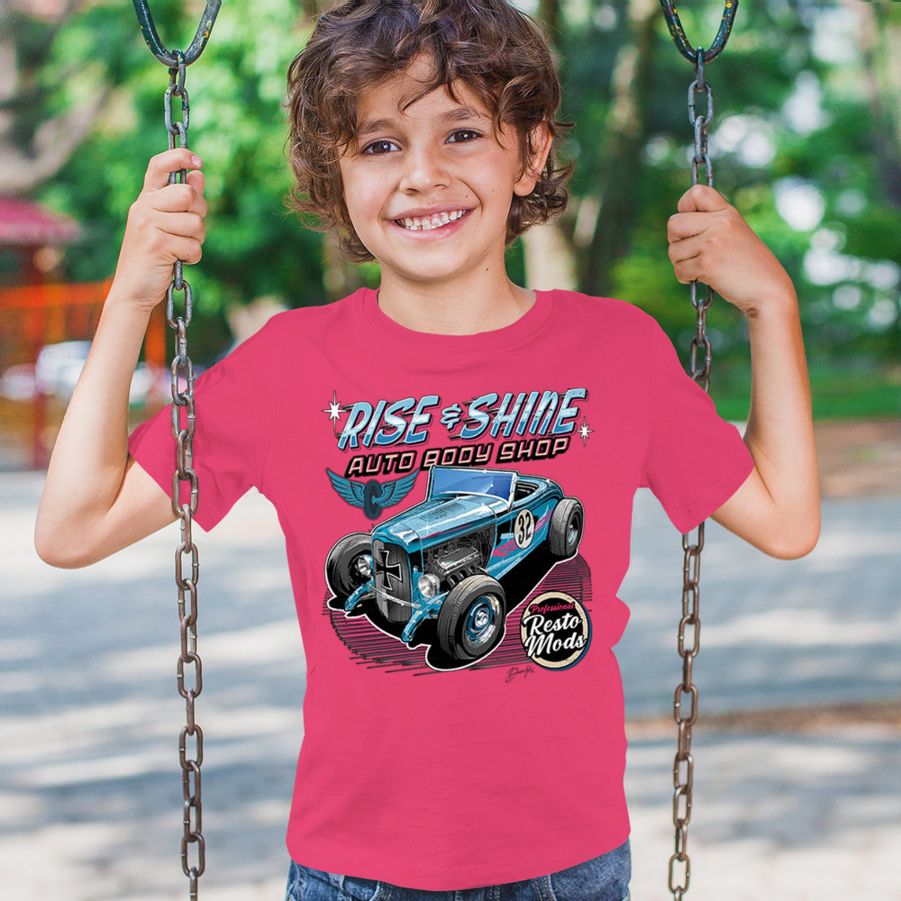 Our "Rise & Shine Auto Body Shop" design is a tribute to classic car culture and professional resto mods. This striking graphic showcases a vintage hot rod, perfect for car enthusiasts and auto restoration fans. Whether you're hitting the car show circuit or working in your garage, this design adds a touch of retro charm to your look. Crafted from premium materials, it offers both comfort and durability, ensuring it stands up to your active lifestyle. Celebrate the art of automotive restoration with this standout design.