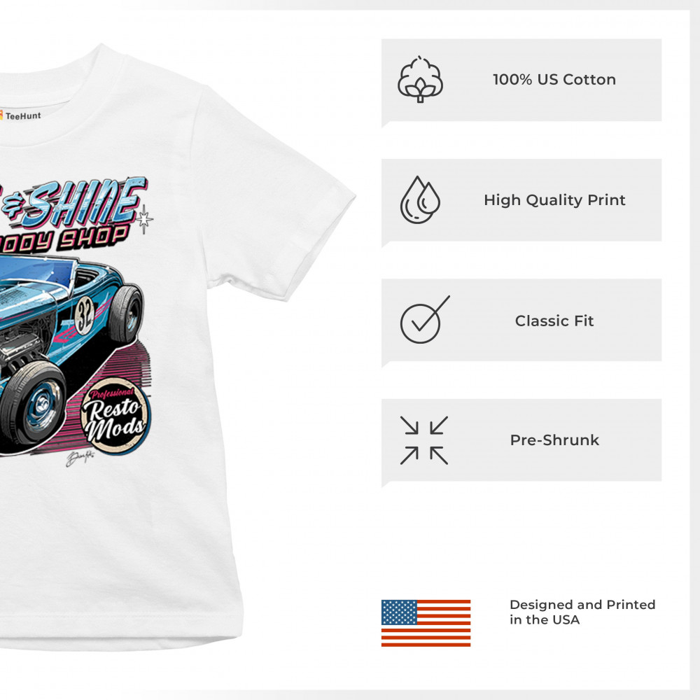 Our "Rise & Shine Auto Body Shop" design is a tribute to classic car culture and professional resto mods. This striking graphic showcases a vintage hot rod, perfect for car enthusiasts and auto restoration fans. Whether you're hitting the car show circuit or working in your garage, this design adds a touch of retro charm to your look. Crafted from premium materials, it offers both comfort and durability, ensuring it stands up to your active lifestyle. Celebrate the art of automotive restoration with this standout design.