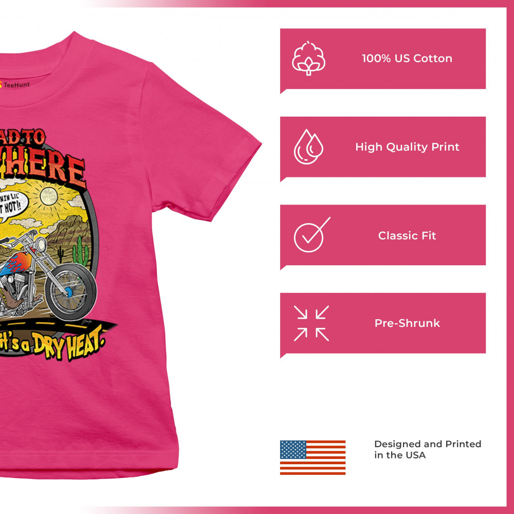 Our 'Road to Nowhere' tee is a salute to the thrill-seekers and the heat-bravers. Adorned with a bold skeleton cruising down Route 66, it embodies the spirit of adventure with a touch of playful defiance. A statement piece for anyone who lives for the ride and laughs in the face of danger. Join the ride into the sunset with this daring design.