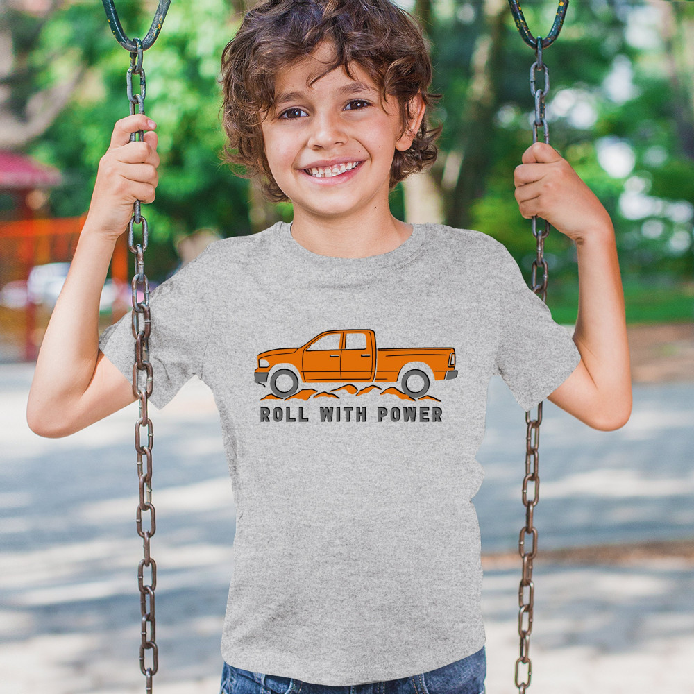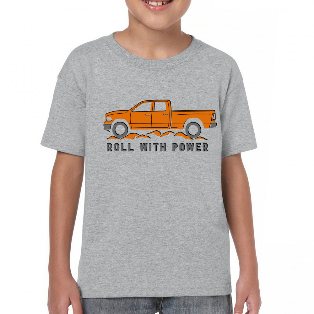 Pickup truck design for off-road fans and truck lovers. Show your road power and style with this bold “Roll With Power†truck graphic.