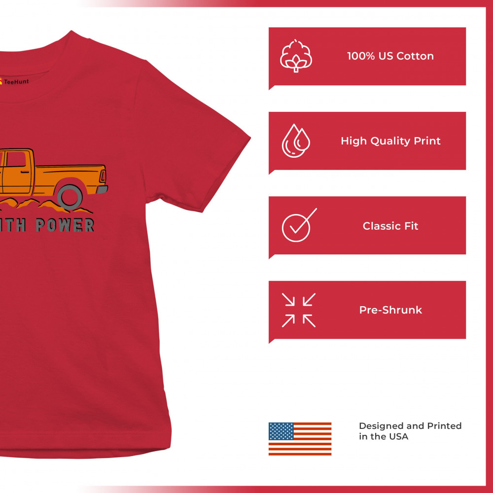 Pickup truck design for off-road fans and truck lovers. Show your road power and style with this bold “Roll With Power†truck graphic.