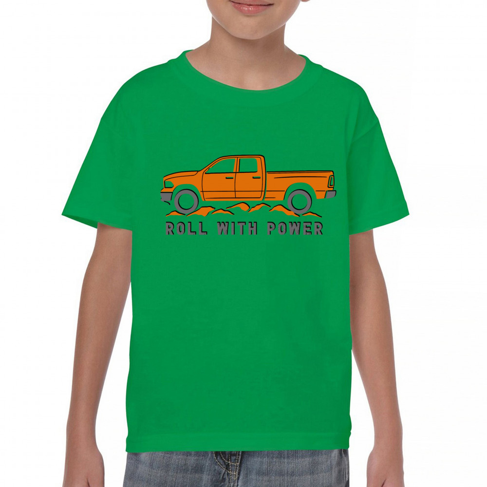 Pickup truck design for off-road fans and truck lovers. Show your road power and style with this bold “Roll With Power†truck graphic.