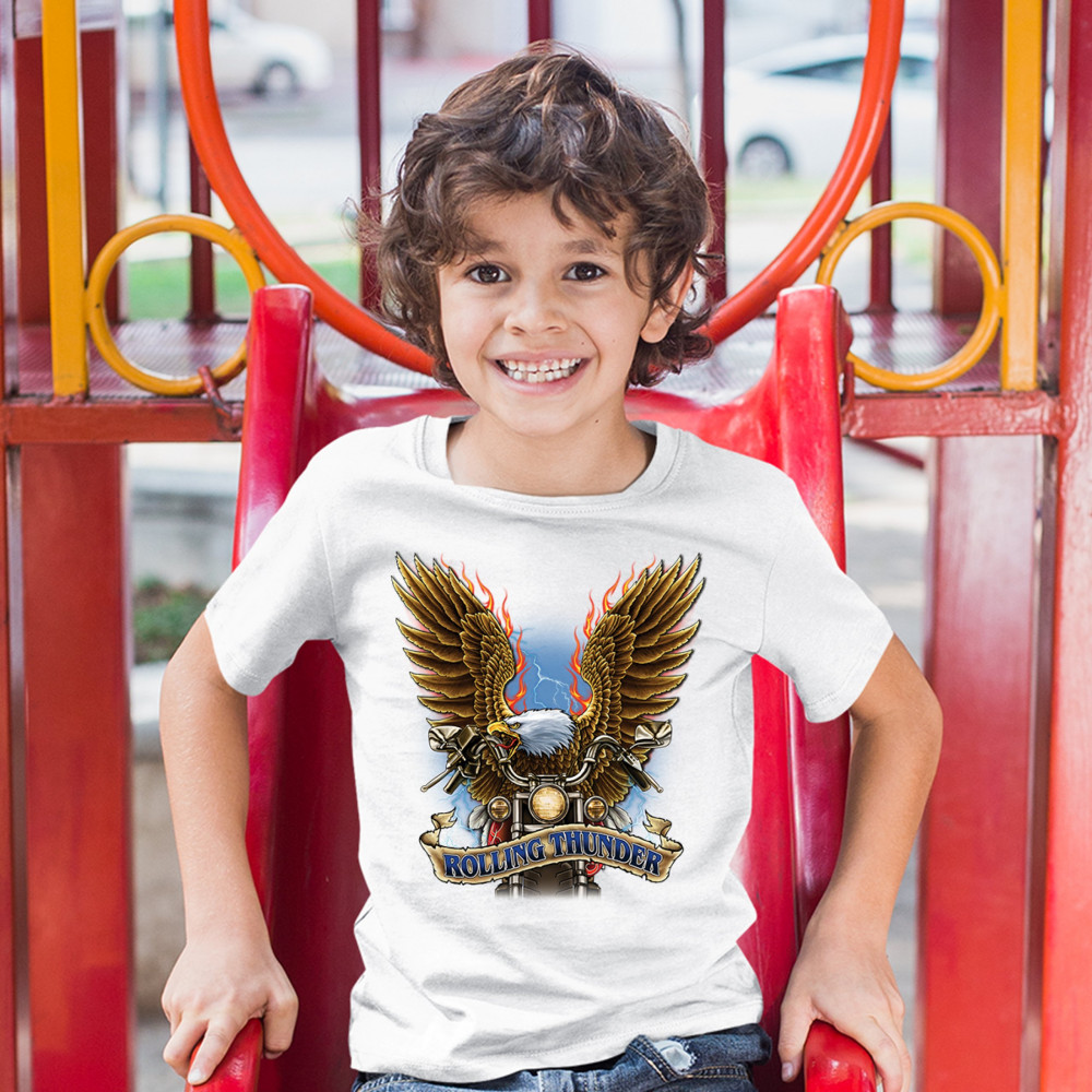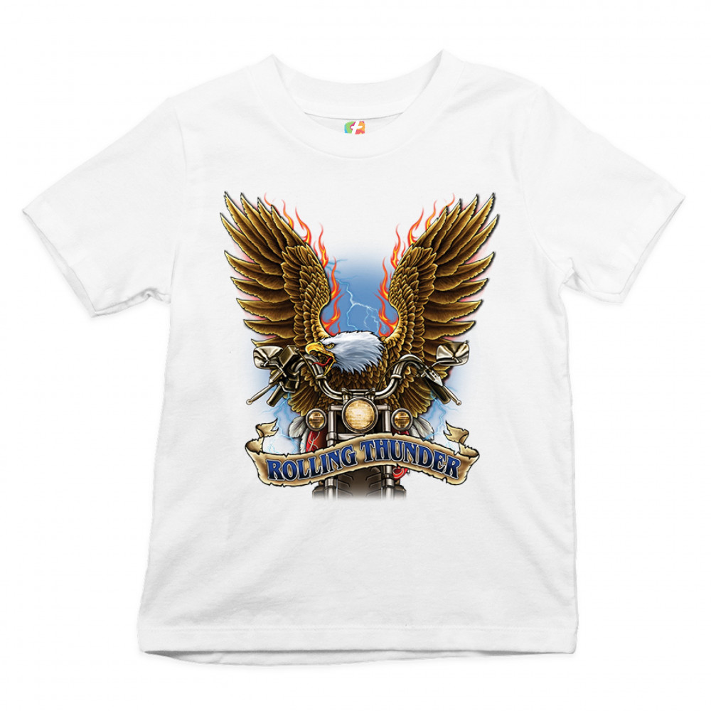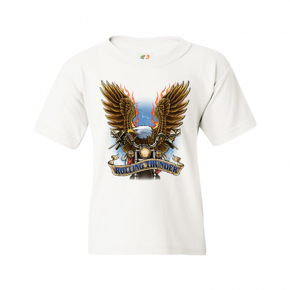 ROLLING THUNDER youth t-shirt biker born to be wild bald eagle outlaw kids white