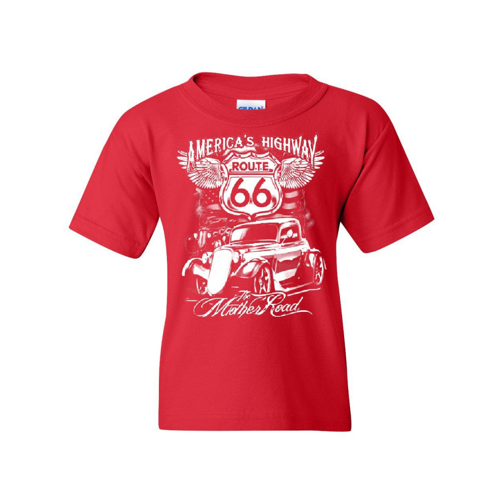 ROUTE 66 AMERICA'S HIGHWAY youth t-shirt the mother road tee shirt red