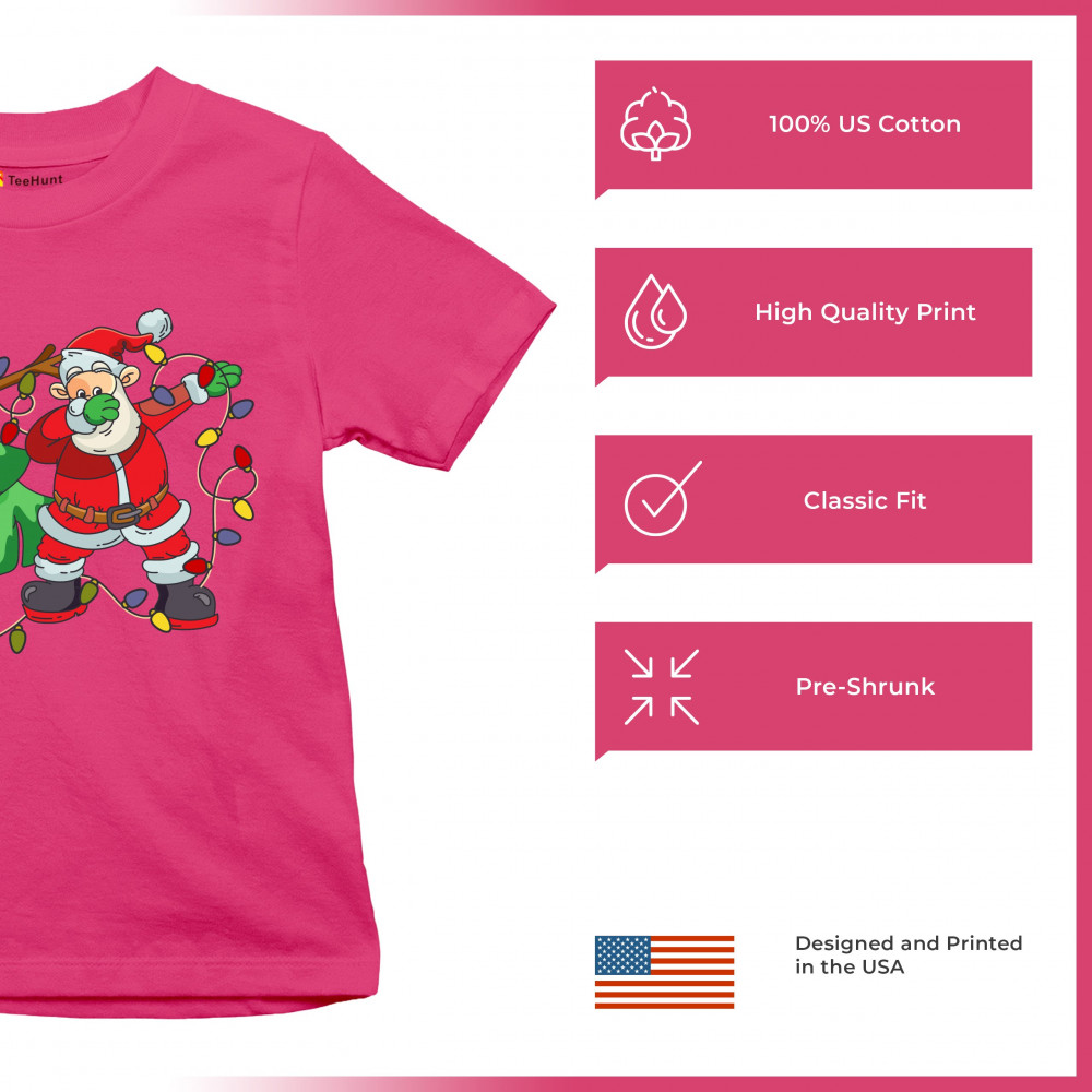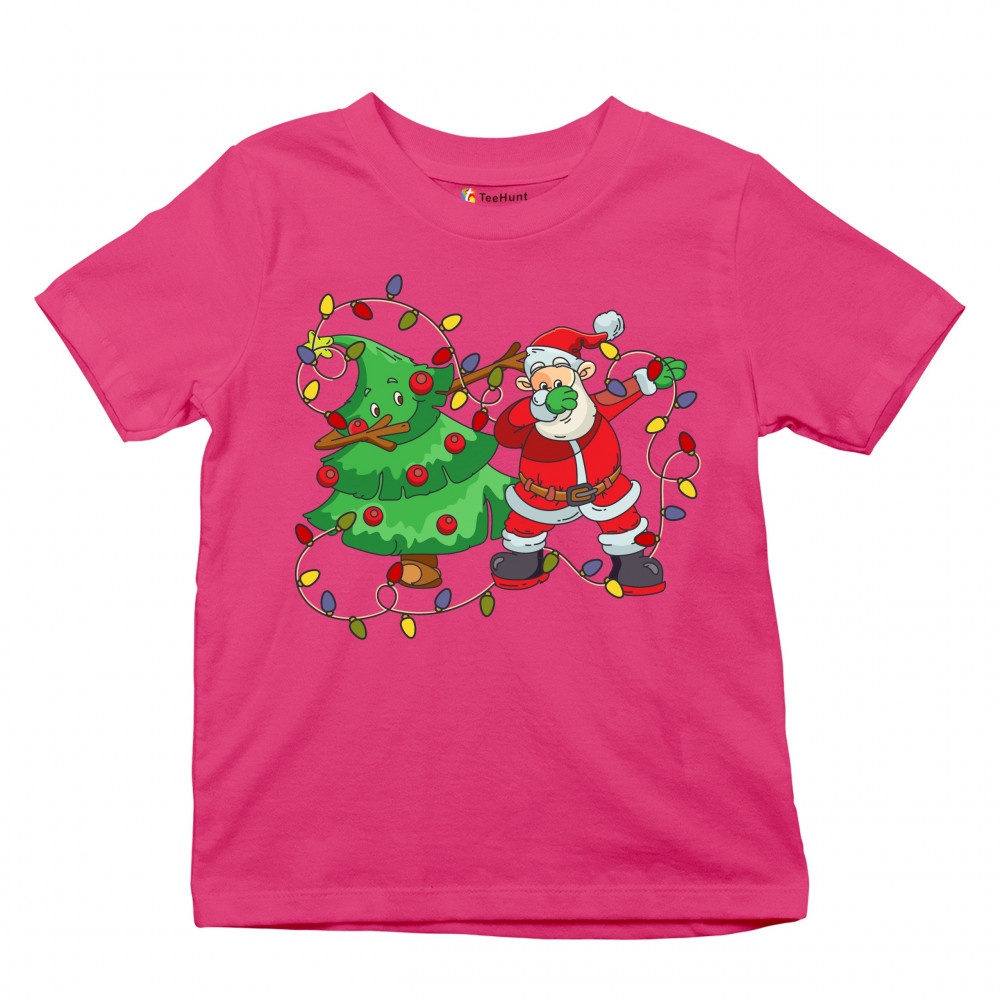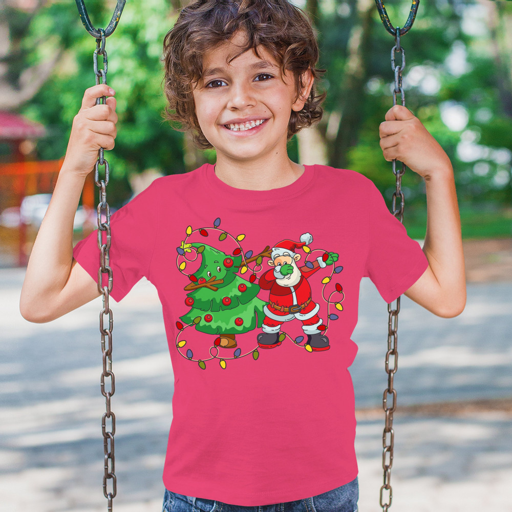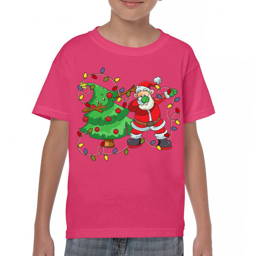 SANTA CLAUS DABBING WITH CHRISTMAS TREE youth t-shirt merry and bright kids pink