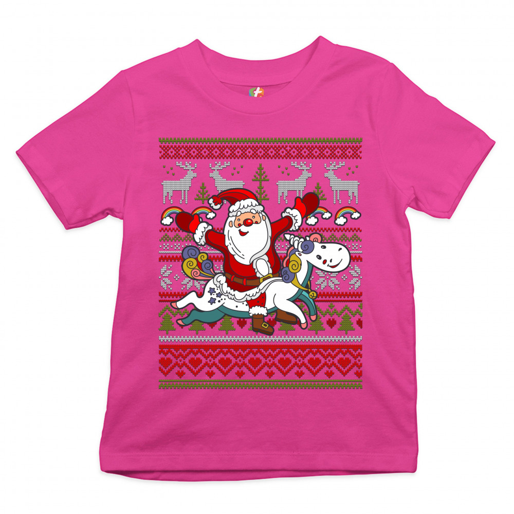 SANTA CLAUS RIDING A UNICORN youth t-shirt merry christmas ugly sweater kids pink