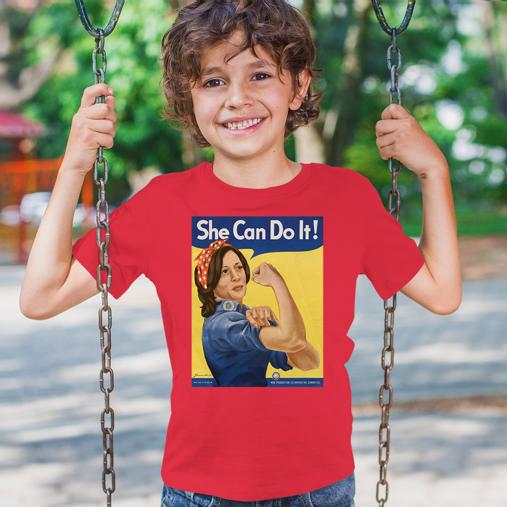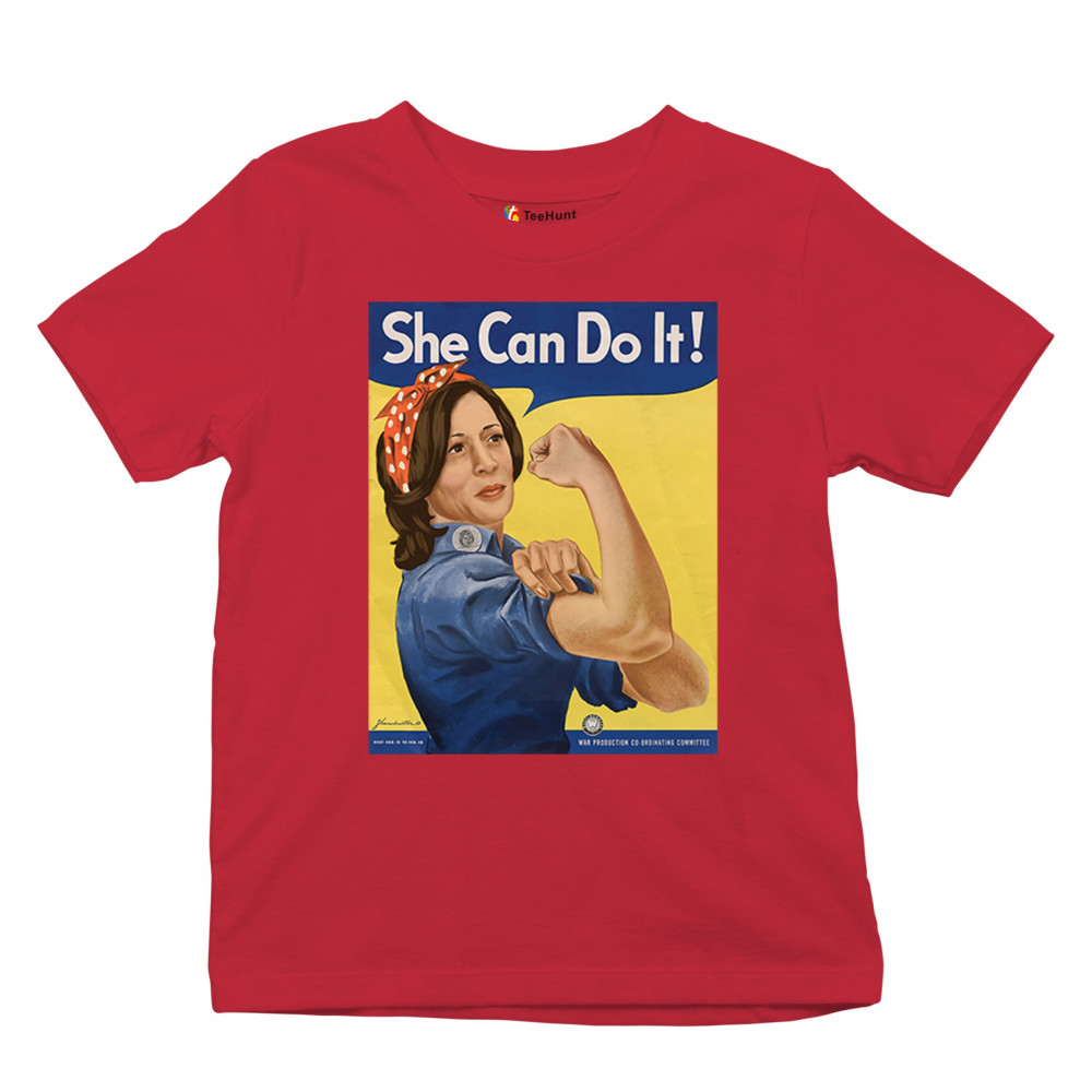 Show your support for Kamala Harris in 2024 with this empowering "She Can Do It!" design. Inspired by Rosie the Riveter, it symbolizes strength, equality, and progress.