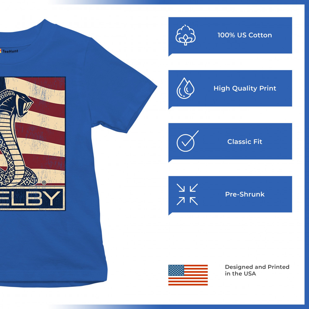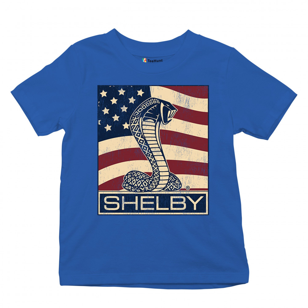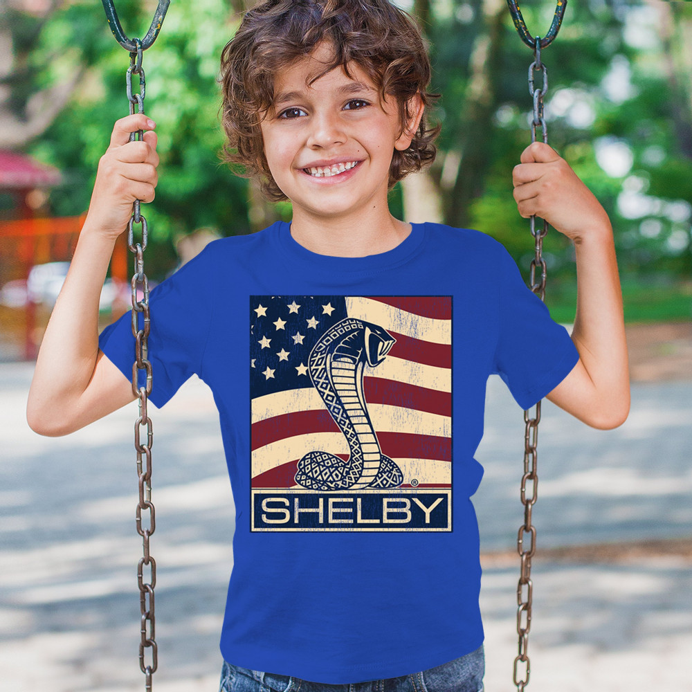 SHELBY COBRA FLAG youth t-shirt legend racing mustang gt powered by ford kids royal blue