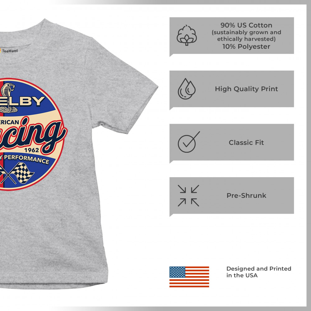 Rev up your wardrobe with our Shelby American Racing design, a tribute to 50 years of Ford Mustang glory and Carroll Shelby's racing legacy.