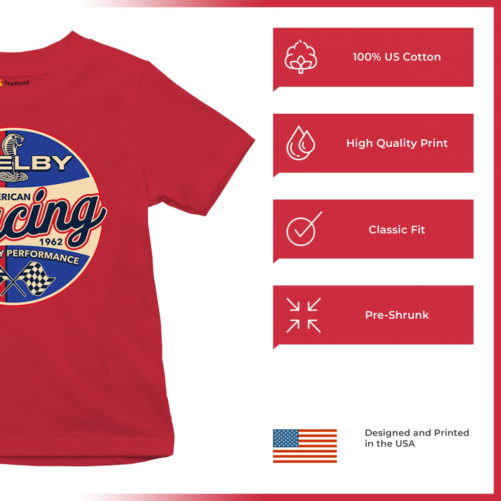 Rev up your wardrobe with our Shelby American Racing design, a tribute to 50 years of Ford Mustang glory and Carroll Shelby's racing legacy.
