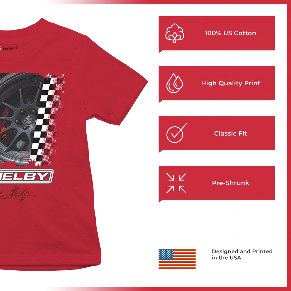 Ignite your wardrobe with this authentic Shelby Mustang design, celebrating 50 years of American-made racing legend and the unparalleled muscle car era.