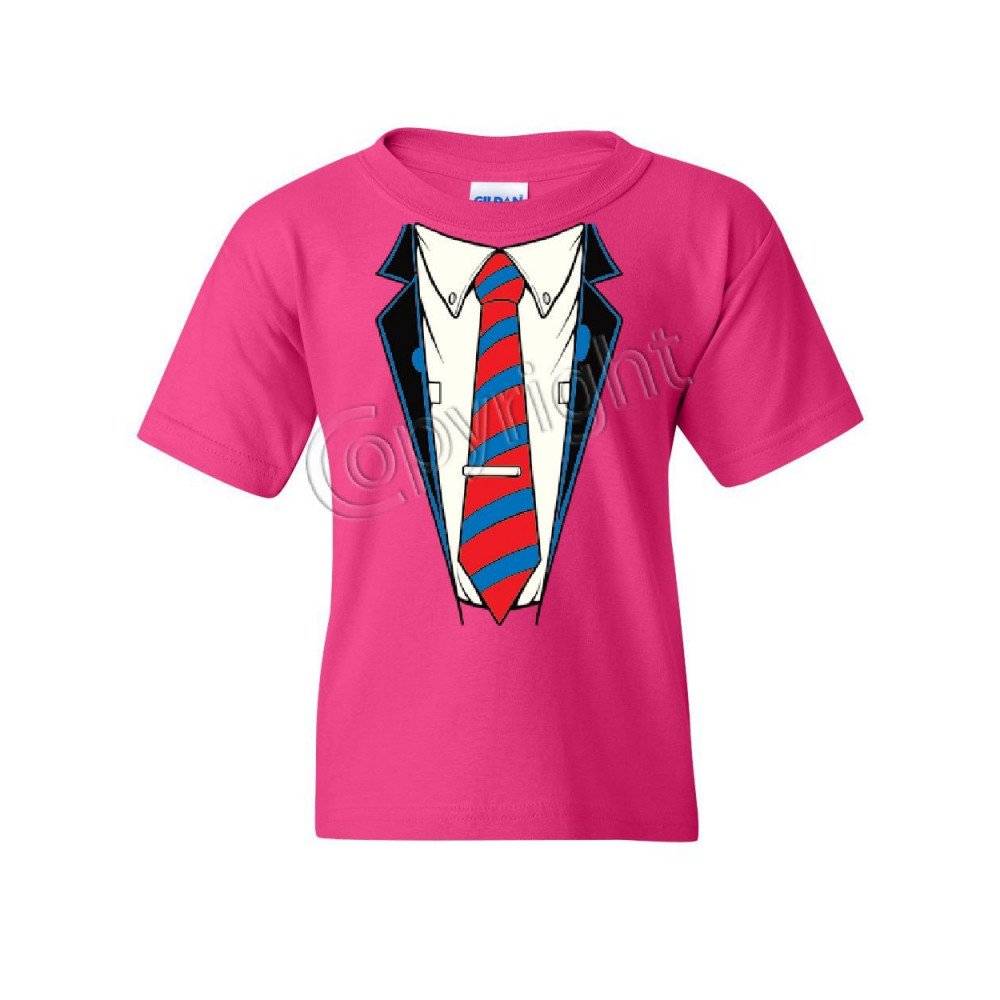 SHIRT AND TIE youth t-shirt office suit casual funny tee pink