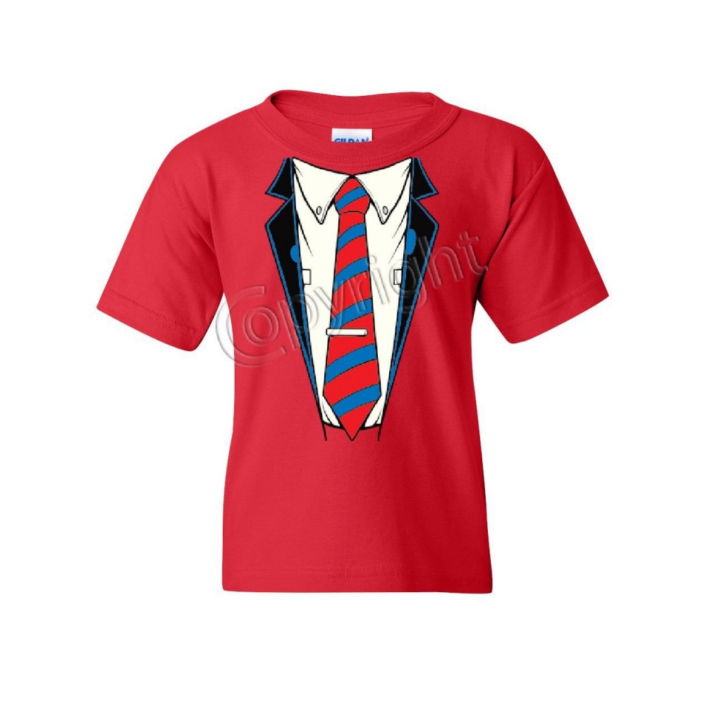 SHIRT AND TIE youth t-shirt office suit casual funny tee red