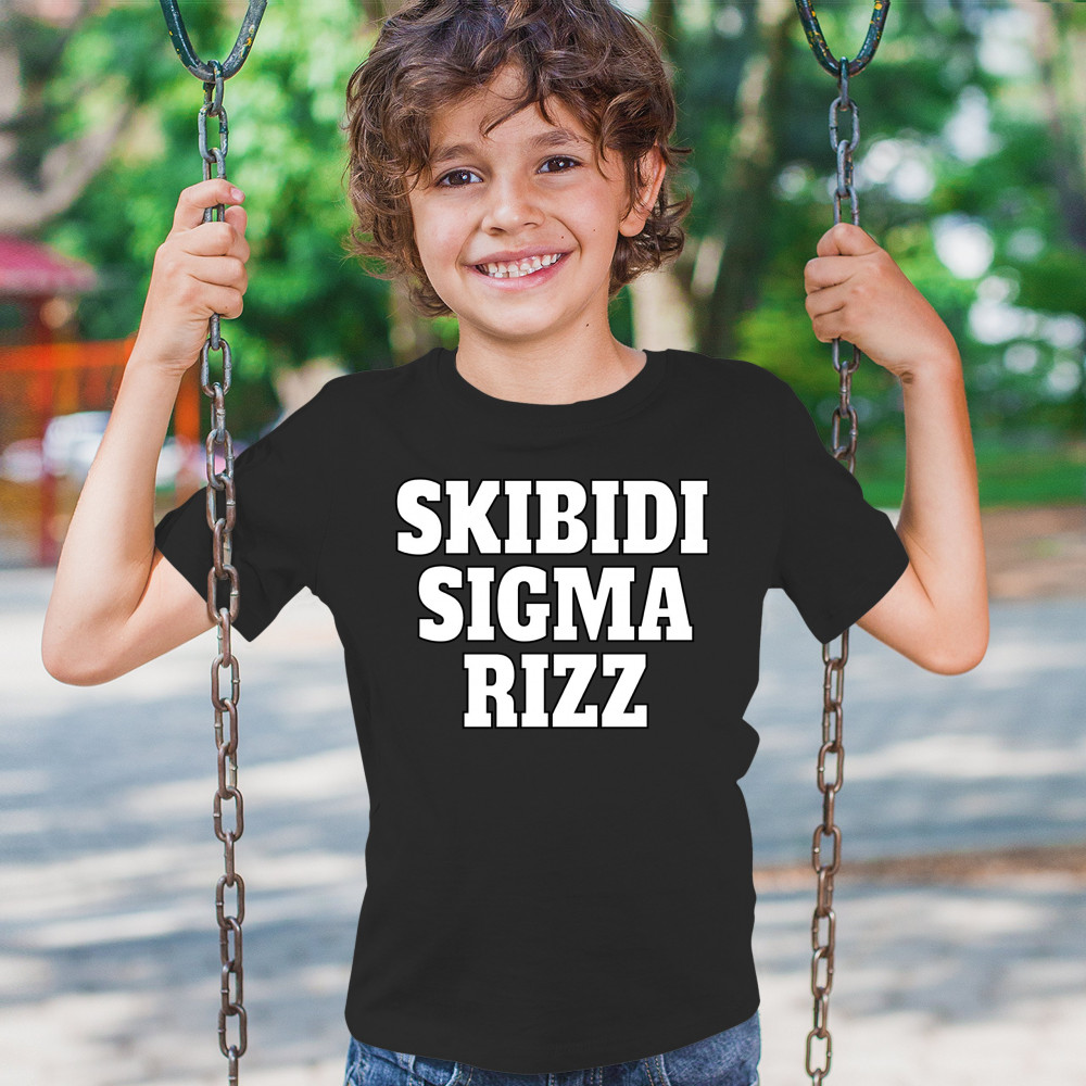 SKIBIDI SIGMA RIZZ youth t-shirt funny goat gyatt meme zoomer viral kids black