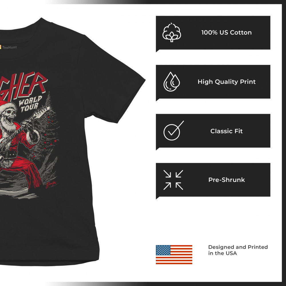 Rock the holidays with the "Sleigher World Tour" Santa skeleton design. Perfect for music lovers, holiday parties, and bold Christmas fashion!