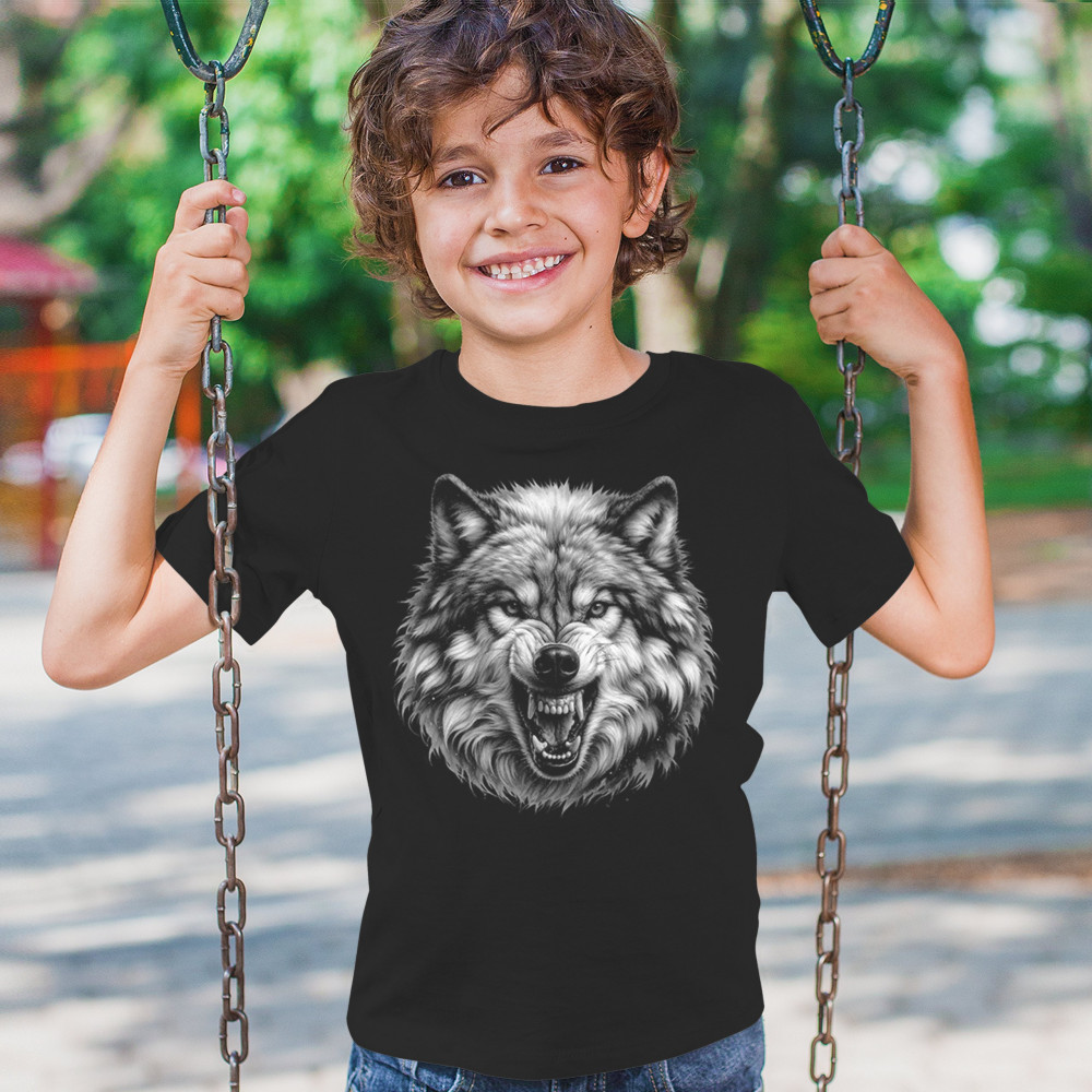 Snarling wolf design with fierce detail and wild spirit. Great for hunters, survivalists, and outdoor alpha energy wear.