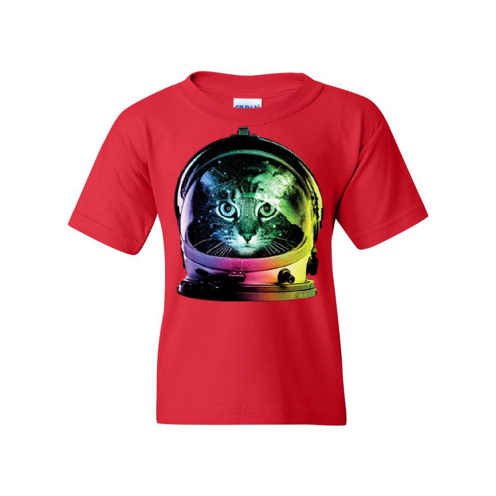 SPACE CAT youth t-shirt astronaut kitten neon galaxy tee red