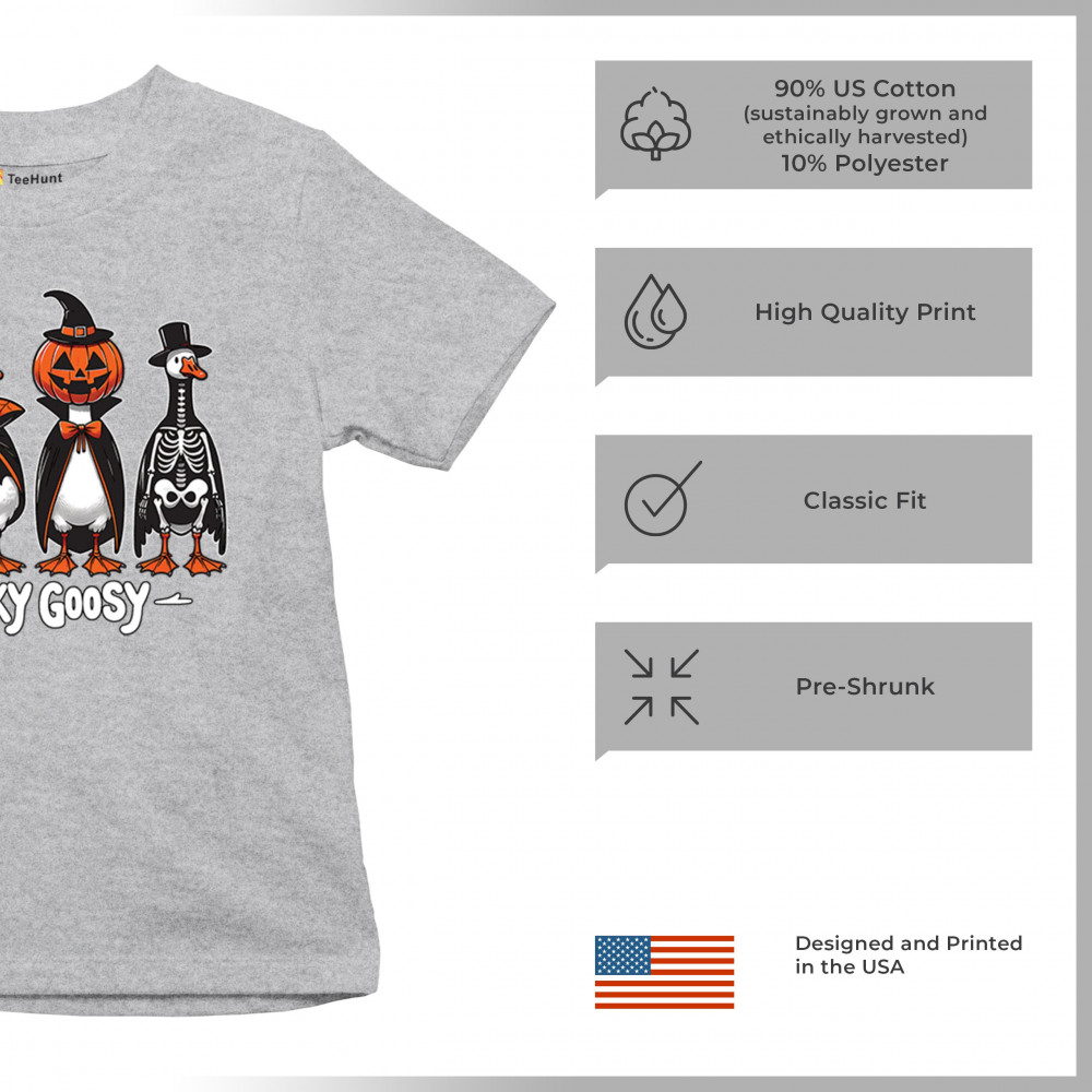 Bring the spooky fun to life with this Spooky Goosy Halloween design featuring geese in witch, skeleton, vampire, and pumpkin costumes. Perfect for haunted house nights, October 31 trick-or-treat events, or monster mash gatherings. A funny and festive choice for goose lovers and Halloween enthusiasts who enjoy creepy costume vibes.