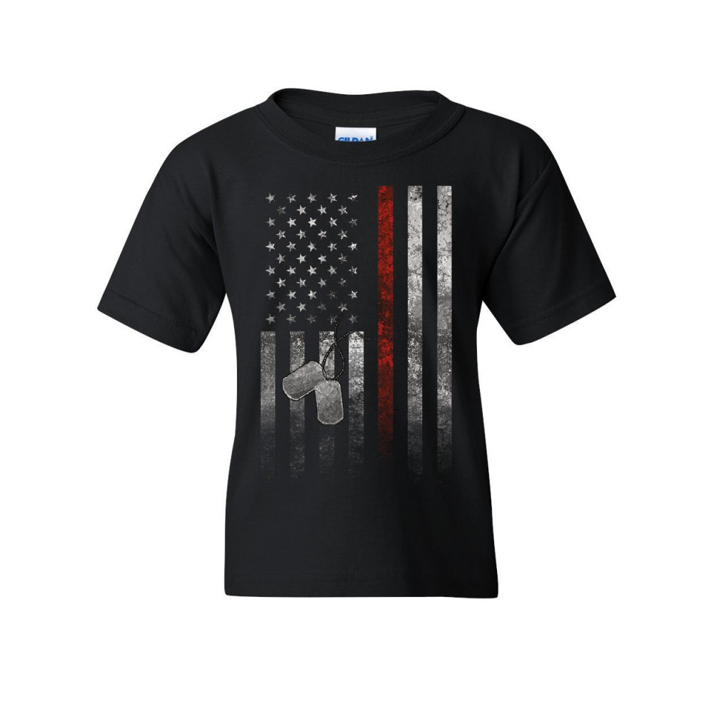 STARS AND STRIPES DOG TAGS youth t-shirt military american patriot usa kids tee black