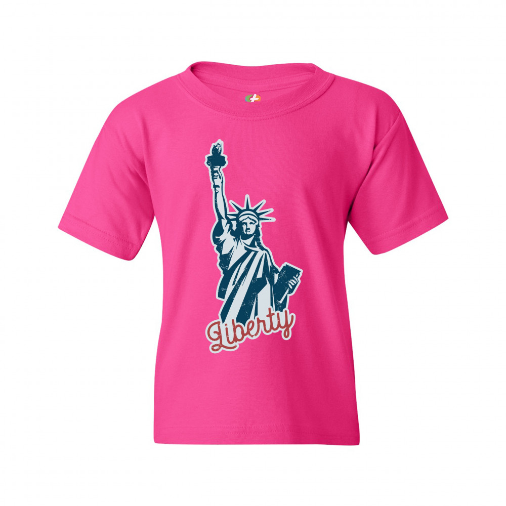 STATUE OF LIBERTY youth t-shirt freedom independence 4th of july nyc usa kids pink