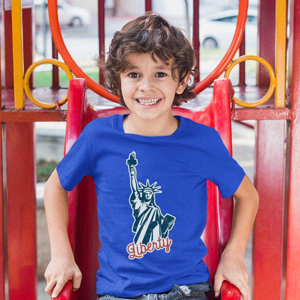 STATUE OF LIBERTY youth t-shirt freedom independence 4th of july nyc usa kids royal blue