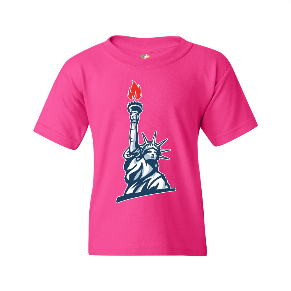 STATUE OF LIBERTY youth t-shirt manhattan new york 4th of july freedom kids pink