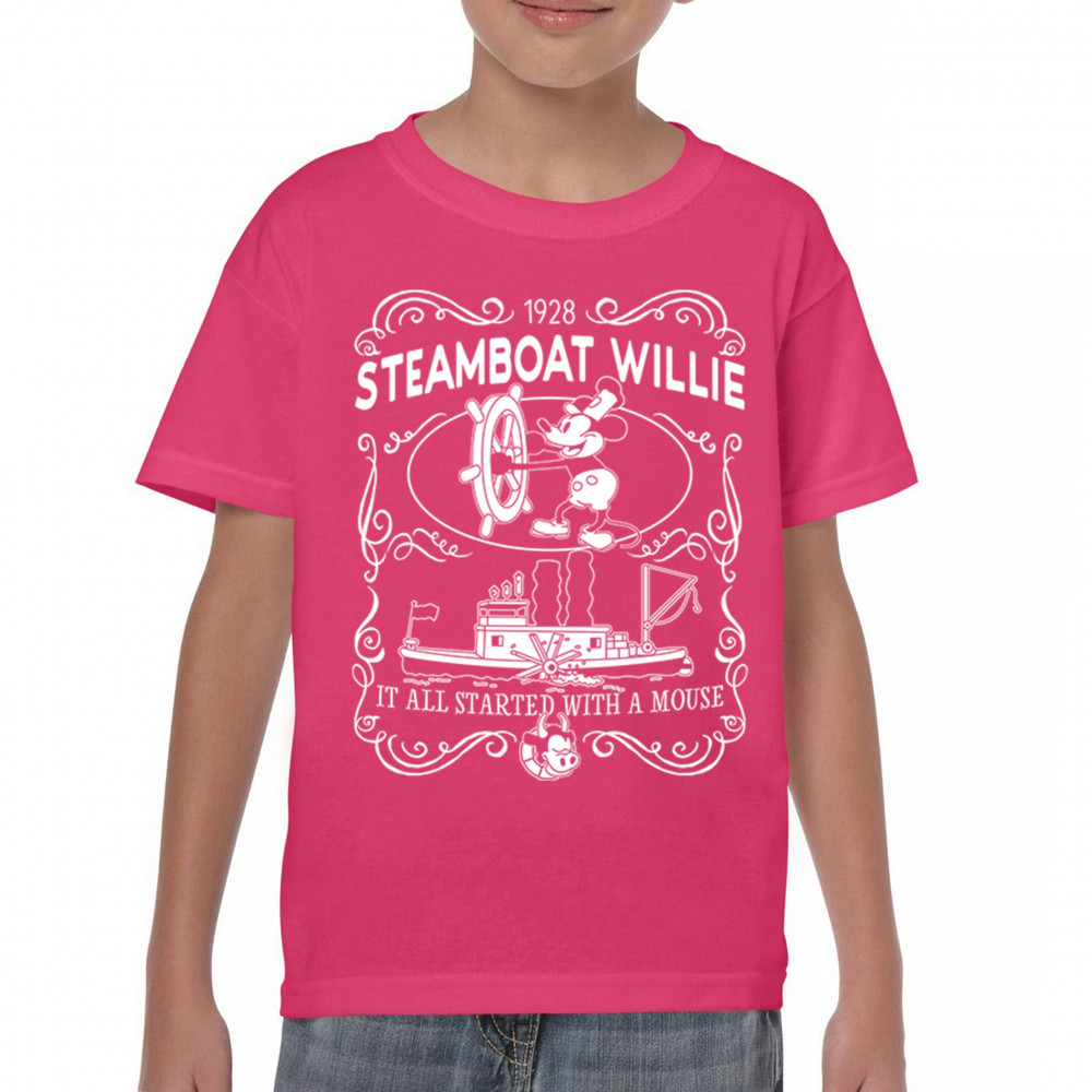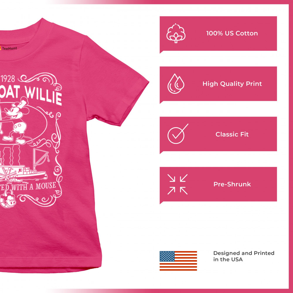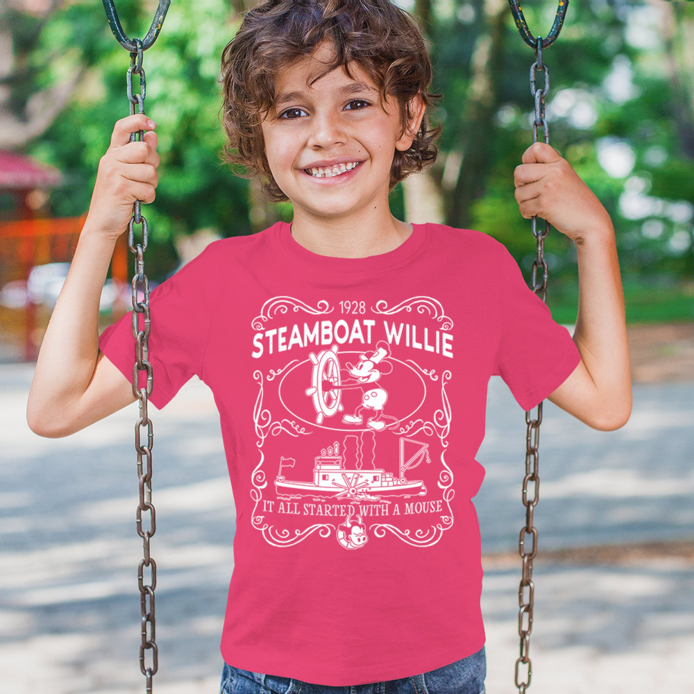 Navigate the waters of nostalgia with Steamboat Willie at the helm, accompanied by the enduring reminder, 'The magic traces back to a little friend.'