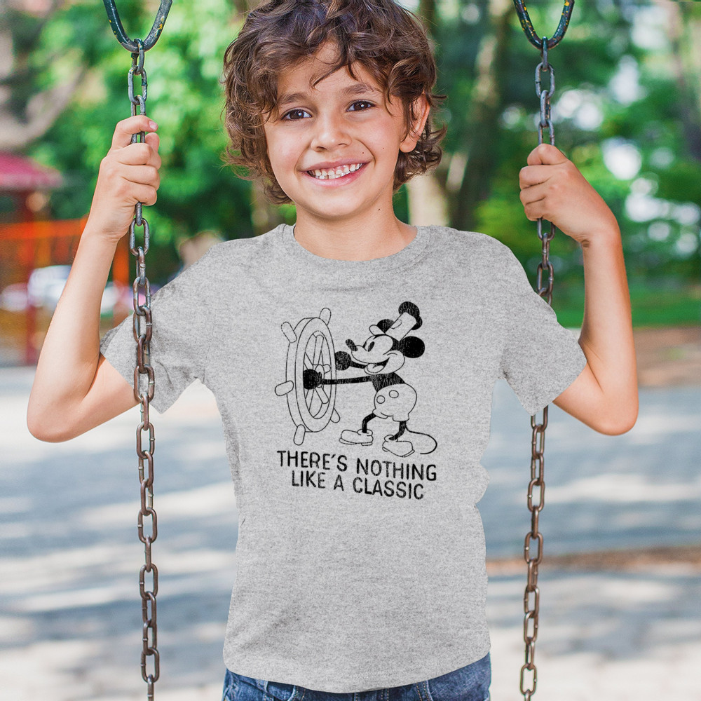 Embrace the magic of an American classic with our 'There is Nothing Like a Classic' tee, featuring Steamboat Willie. Paying homage to the iconic 1928 cartoon, this design is sure to inspire memories of family vacations and timeless traditions. Let the charm of this classic cartoon transport you to a simpler time.