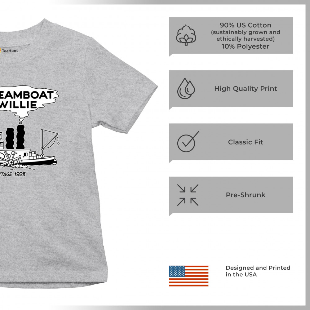 Channel the charm of a bygone era with our 'Steamboat Willie Vintage 1928' tee, paying tribute to this beloved American classic. Perfect for beach days and family vacations alike, this design evokes feelings of nostalgia and whimsy. Let Steamboat Willie i